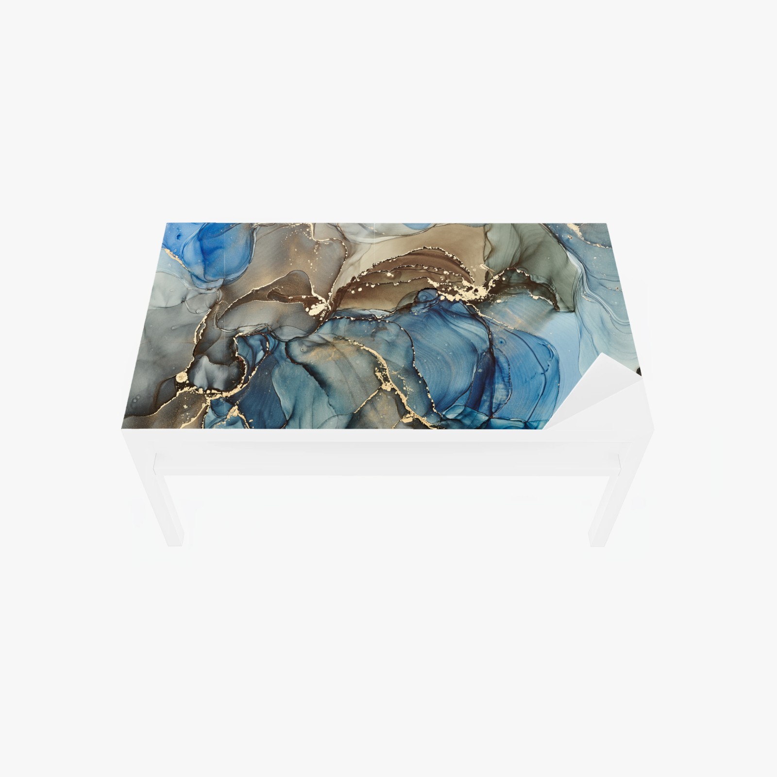 Tischaufkleber und Schreibtischaufkleber Blaue und goldene flüssige abstraktion
