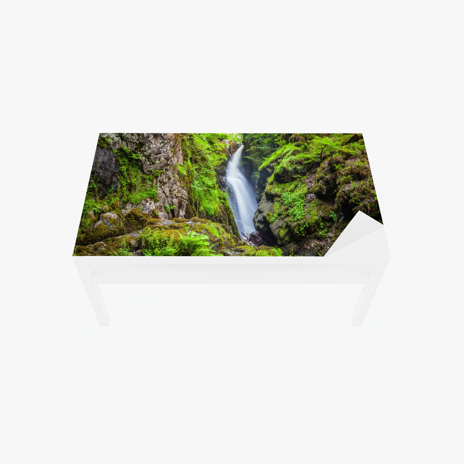 Tischaufkleber und Schreibtischaufkleber Wasserfall in moosiger schlucht mit steinbrücke