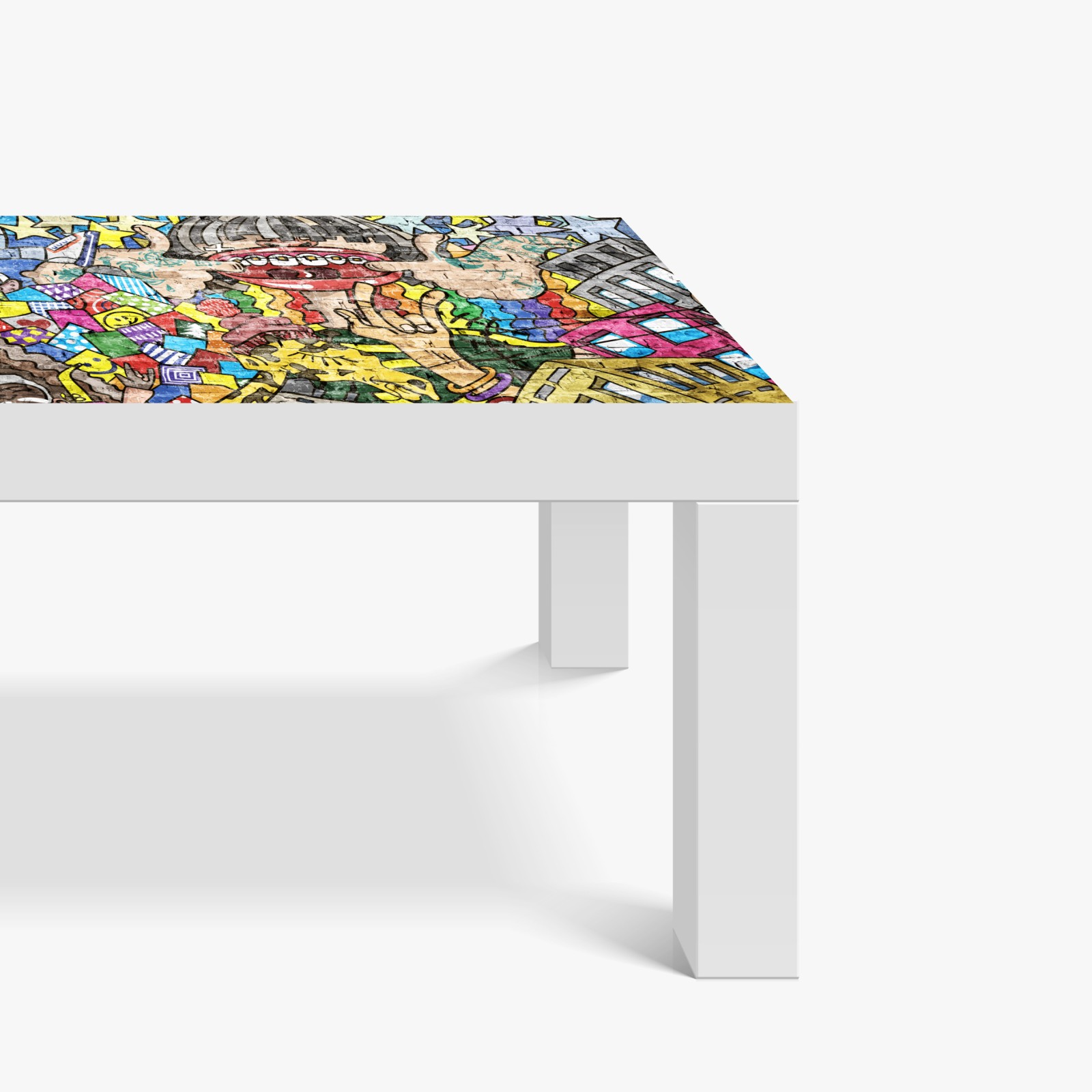 Tischaufkleber und Schreibtischaufkleber buntes graffiti-mural mit verspielter figur