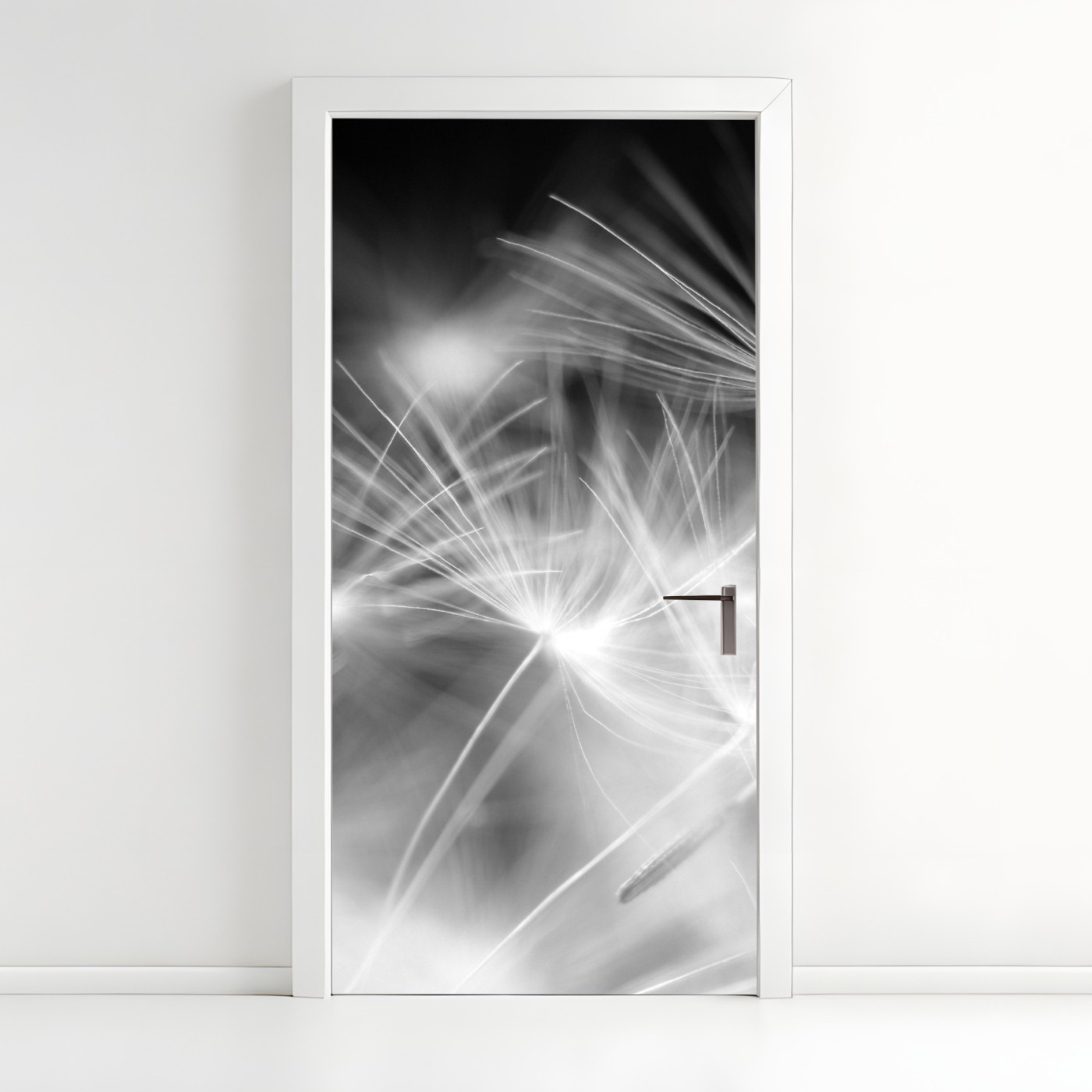 Türaufkleber Zarte löwenzahnsamen in monochrom