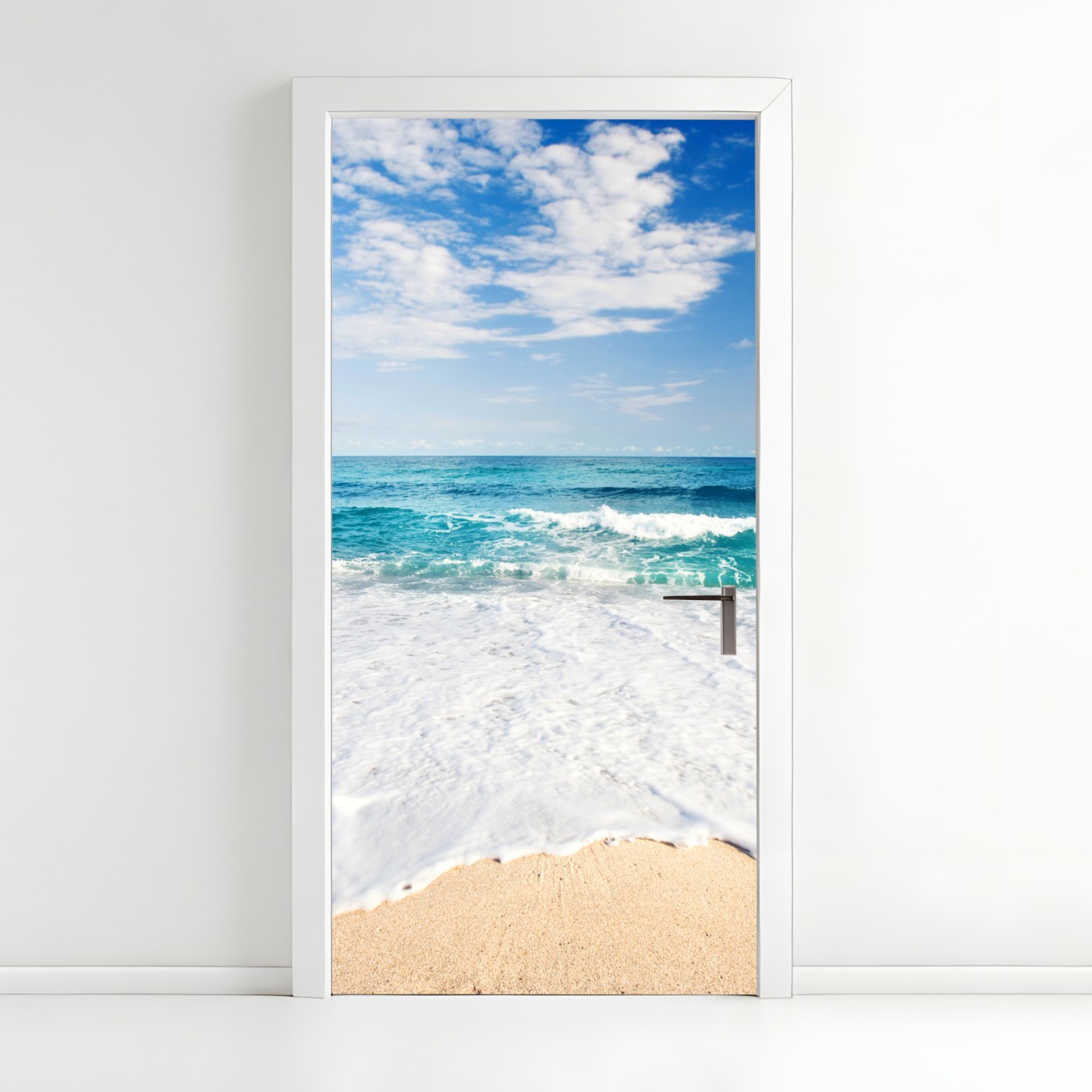 Türaufkleber Türkisfarbene wellen am sandstrand