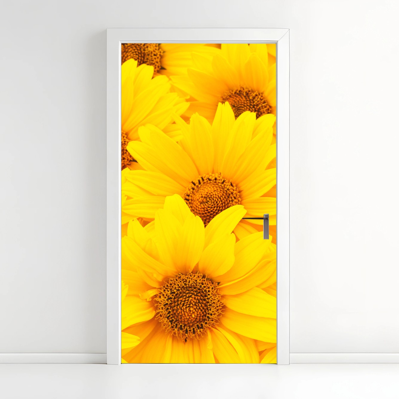 Türaufkleber Leuchtende gelbe sonnenblumen in nahaufnahme