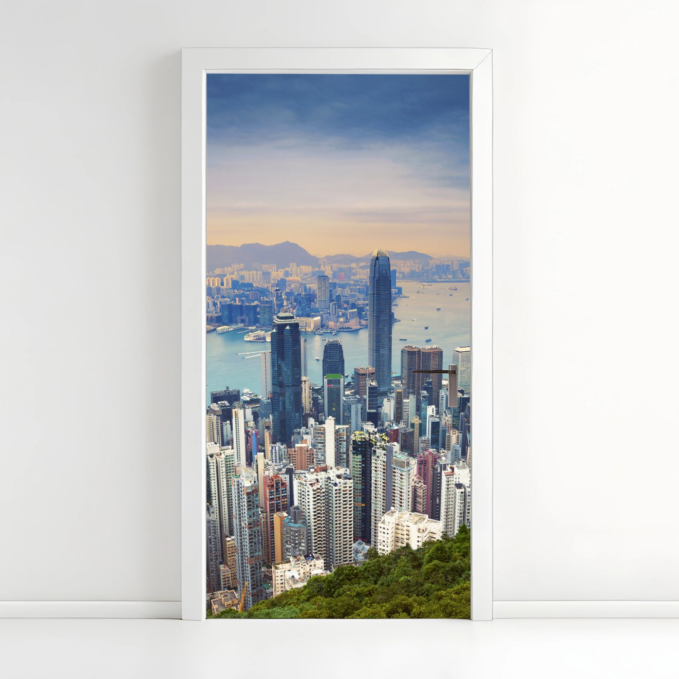 Türaufkleber Hong Kong stadtpanorama bei dämmerung