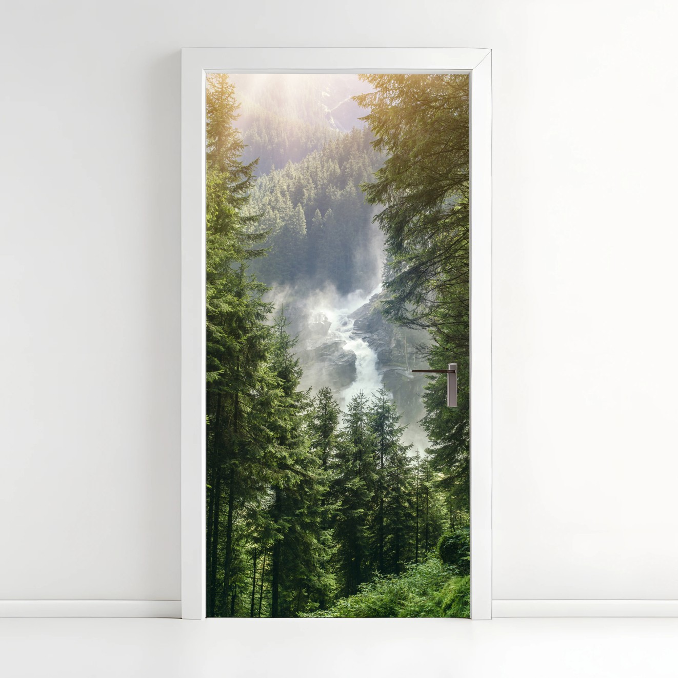 Türaufkleber Krimml wasserfall im üppigen alpinen wald