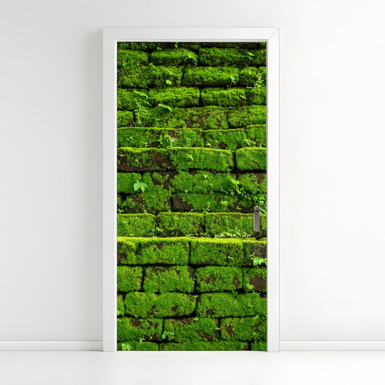 Türaufkleber Üppige moosbedeckte ziegelwand