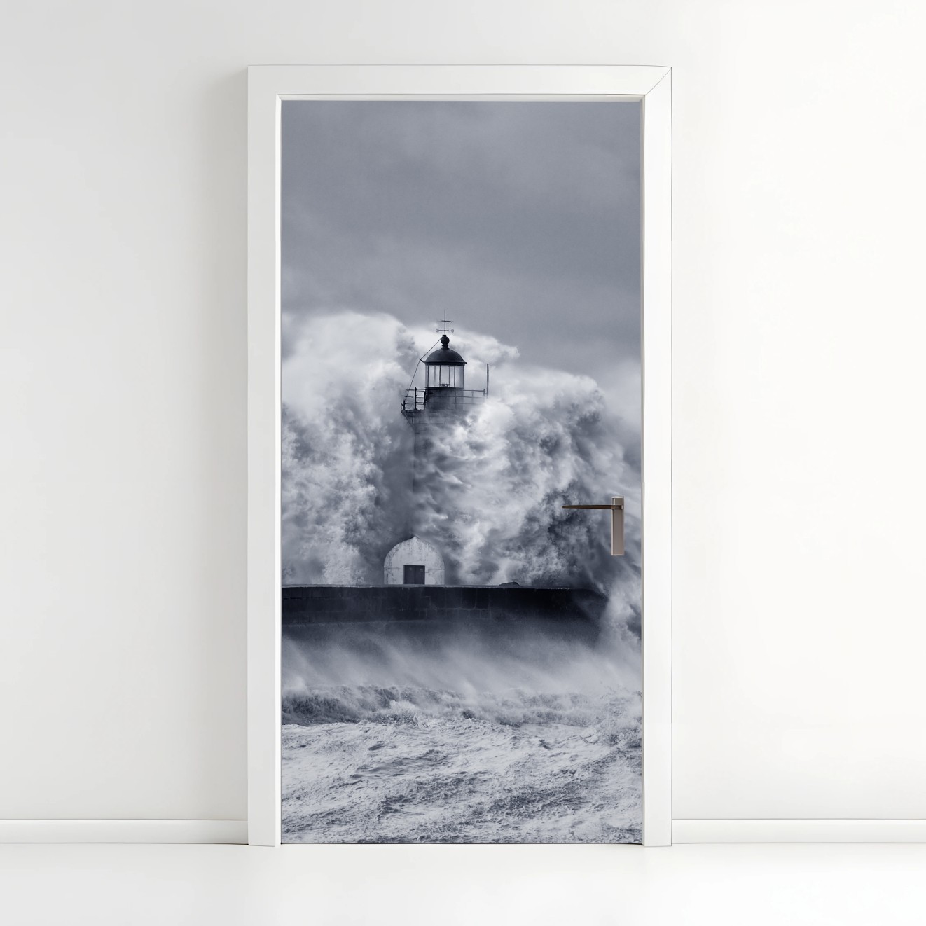 Türaufkleber Leuchtturm von mächtigen wellen umgeben