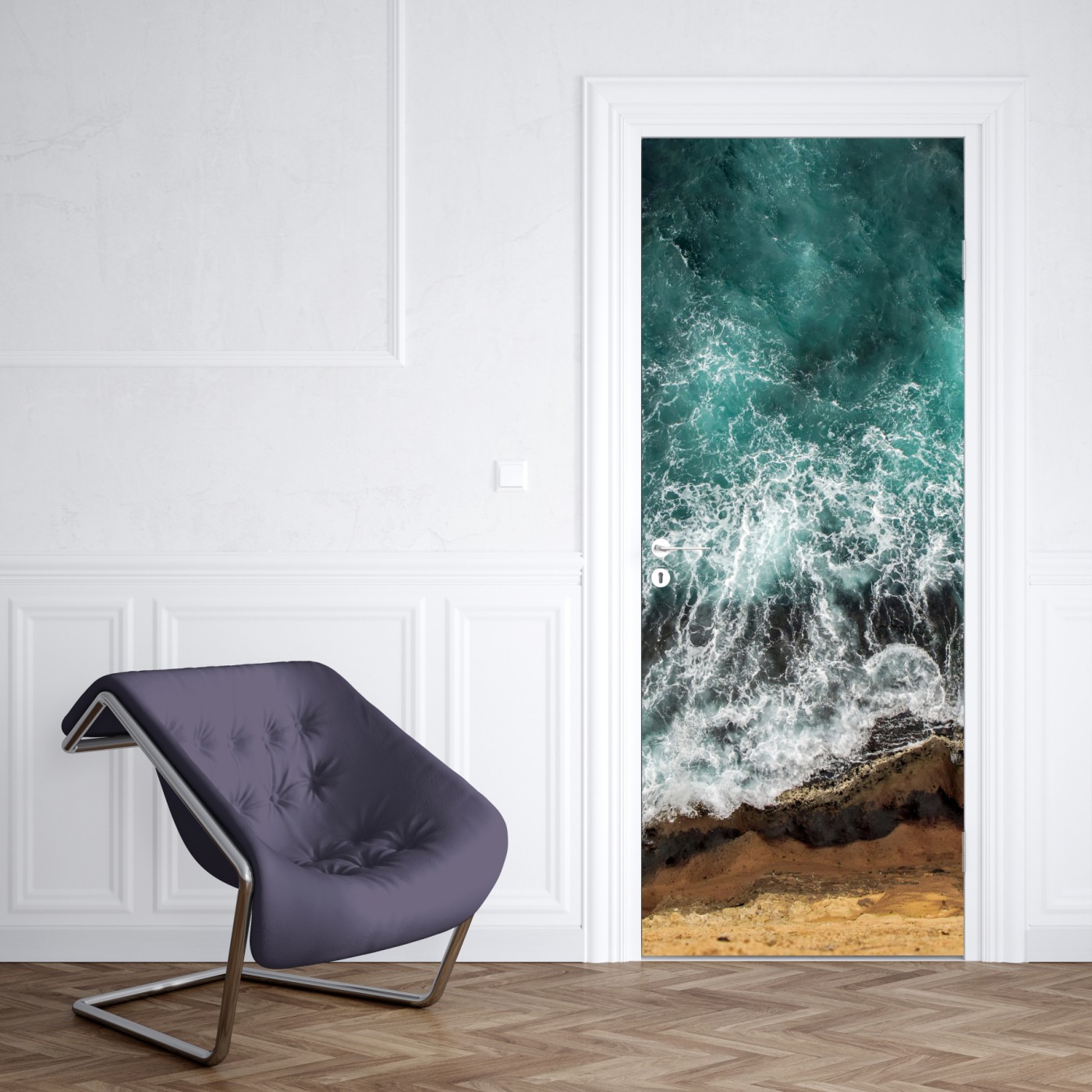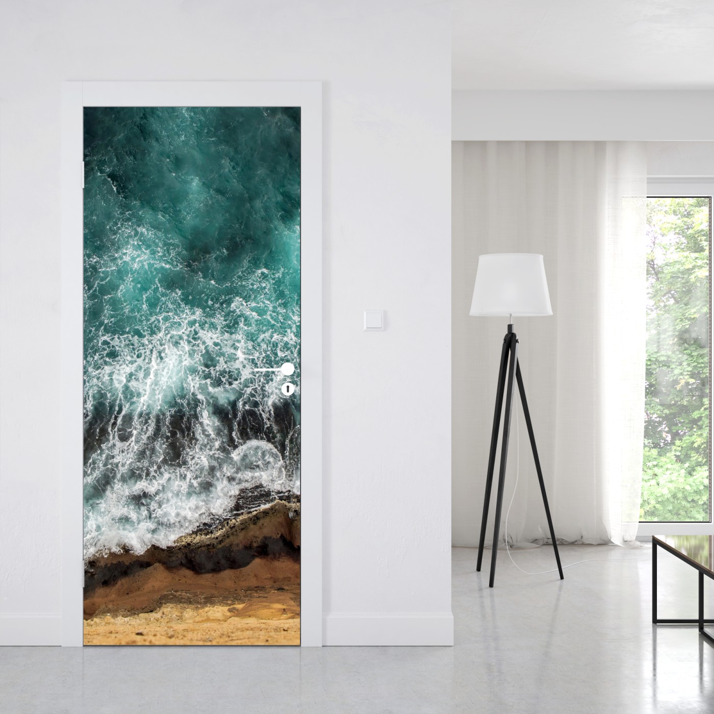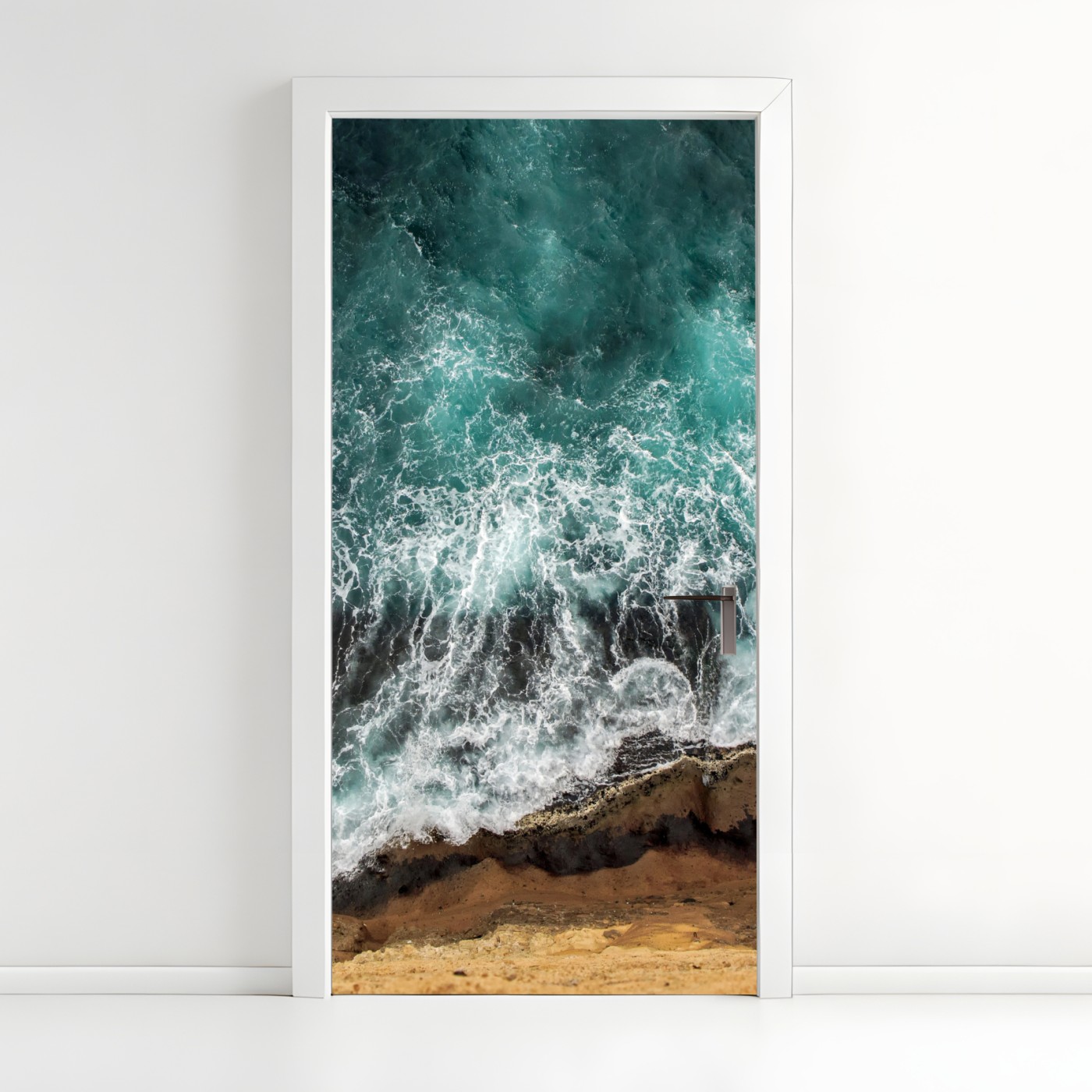 Türaufkleber Türkise küste aus der vogelperspektive mit brandenden wellen