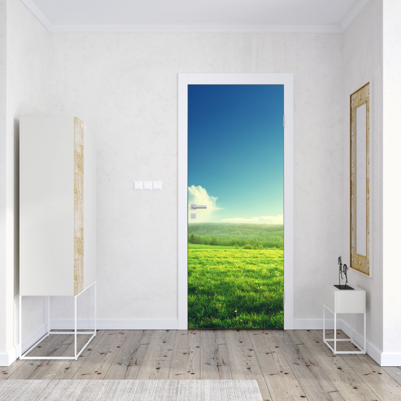 Türaufkleber Sonnige frühlingswiese im abendlicht