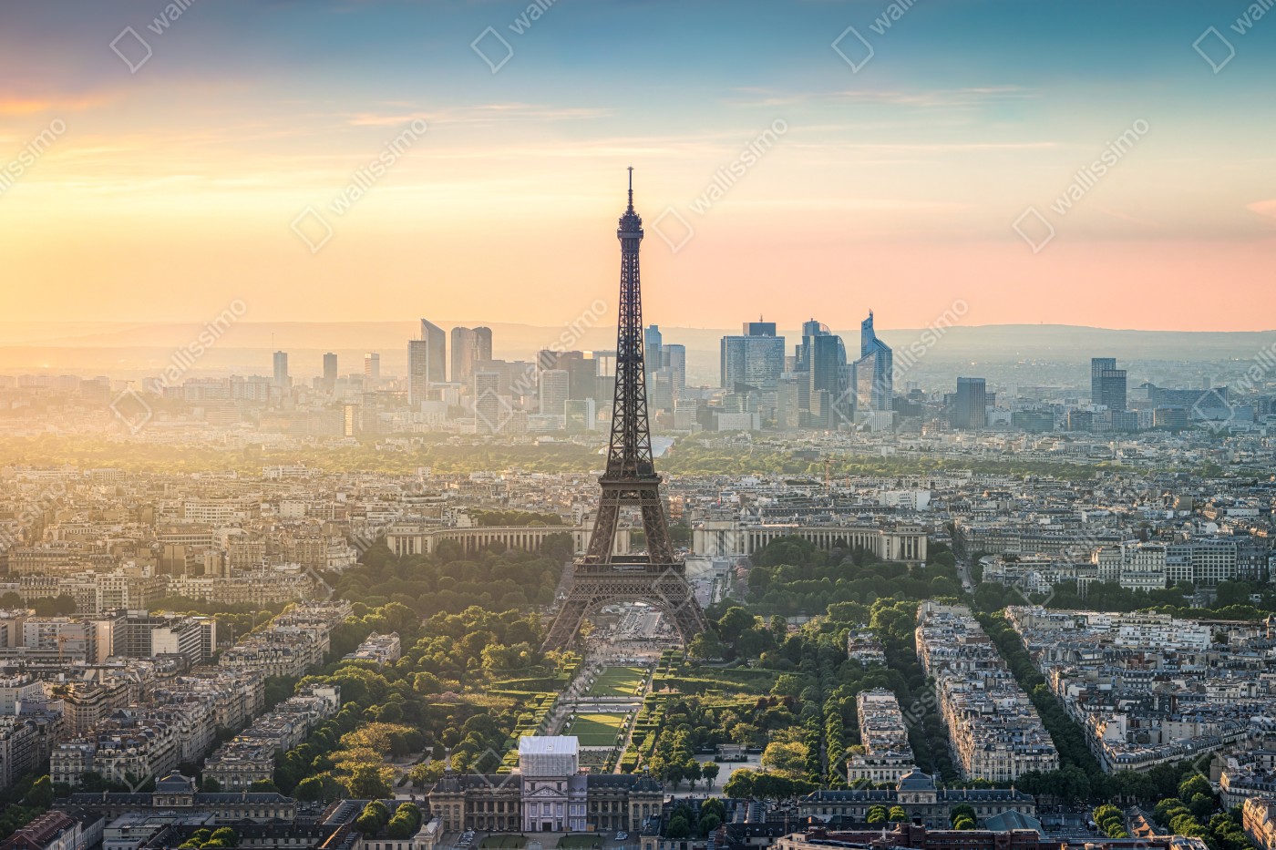 Türaufkleber Paris stadtbild bei sonnenuntergang mit dem Eiffelturm