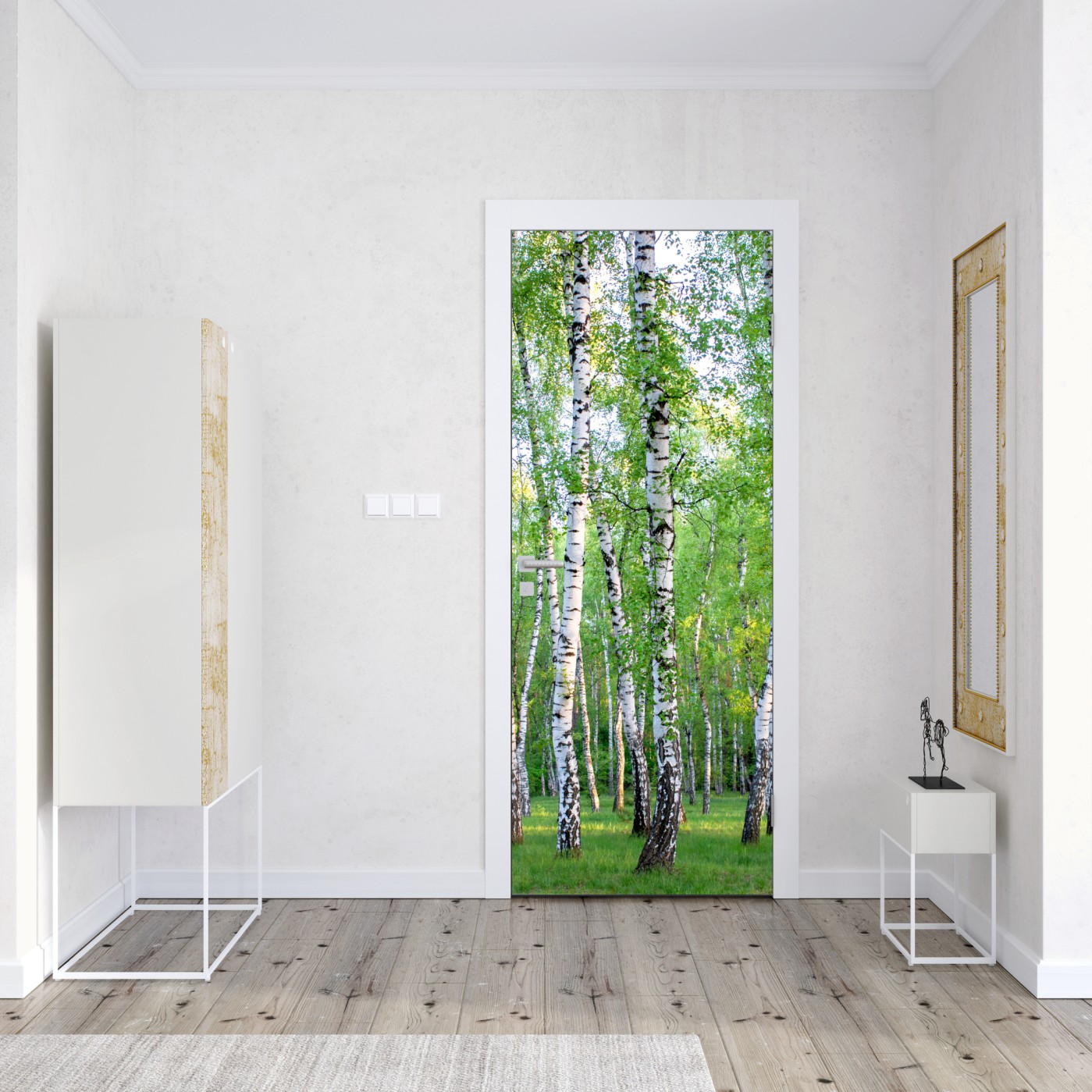 Türaufkleber Ruhiger birkenhain im sommer