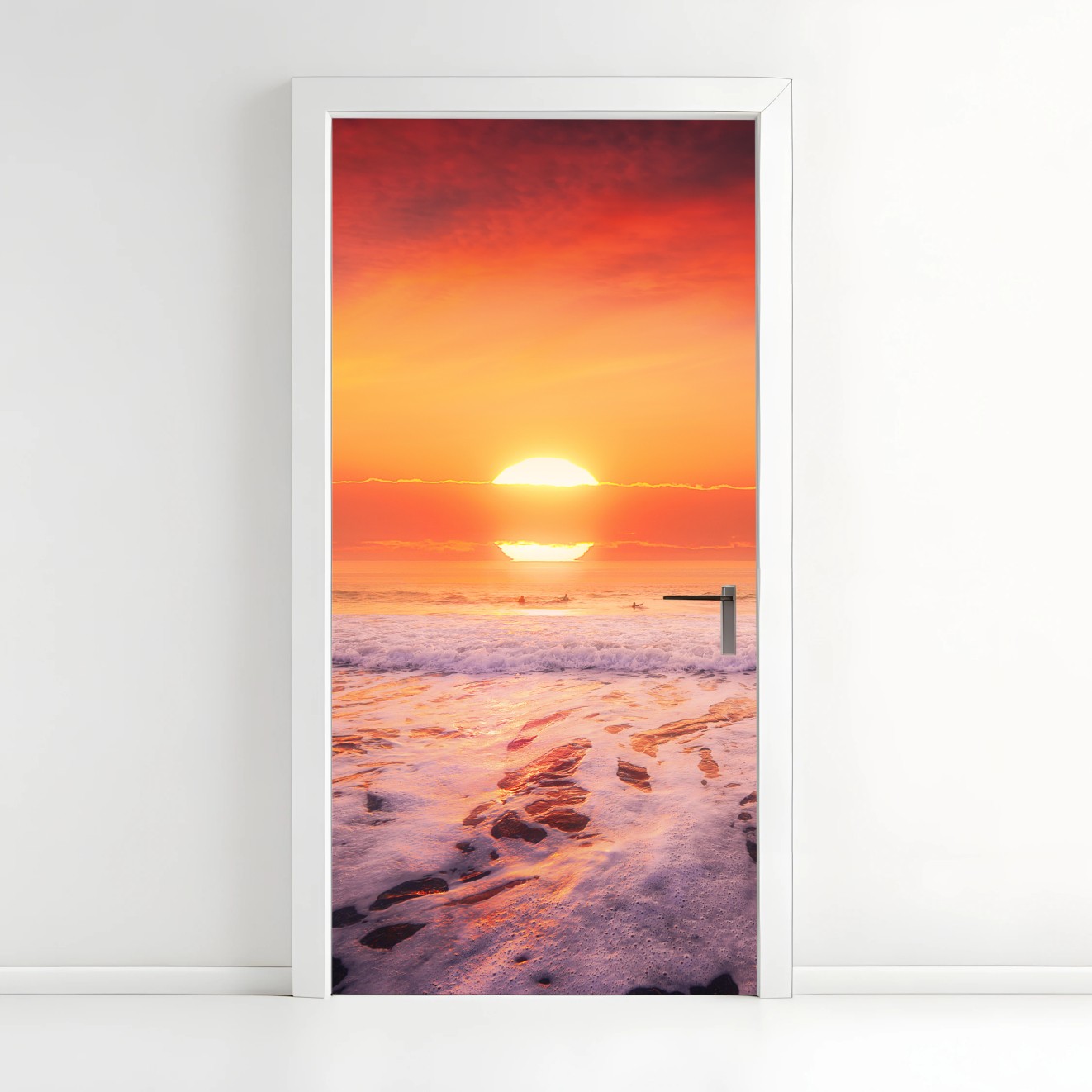 Türaufkleber Goldener sonnenuntergang über ruhigem strand