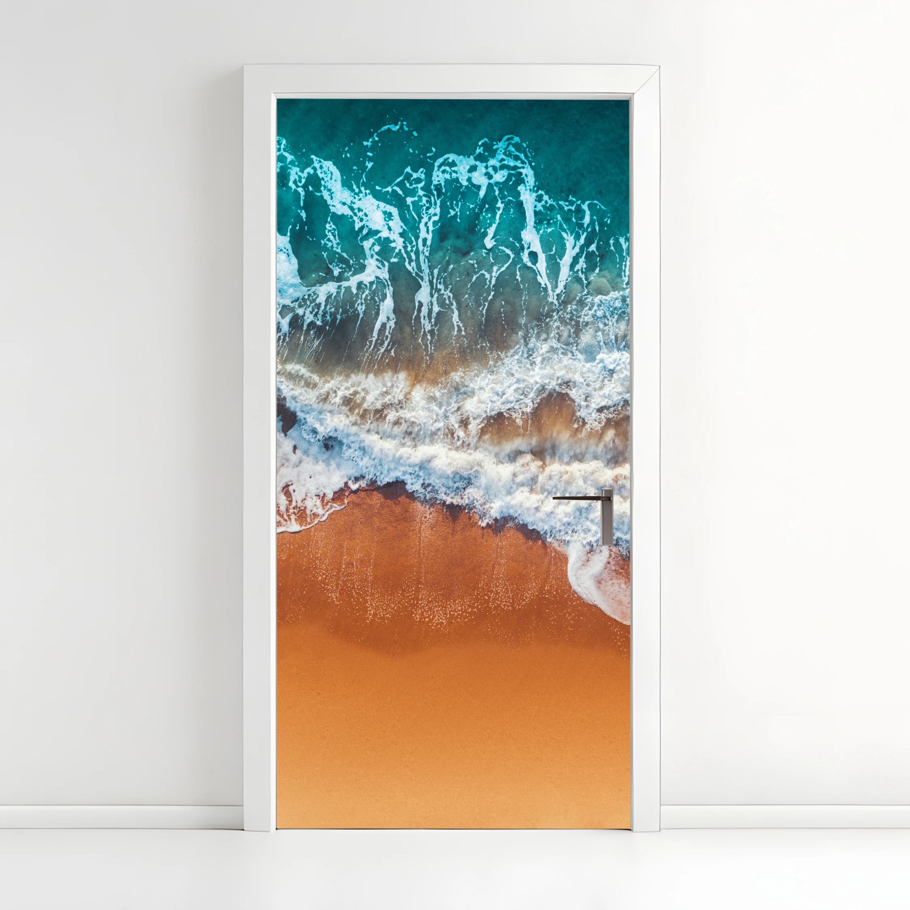 Türaufkleber Luftaufnahme türkisfarbener wellen an einem sandstrand