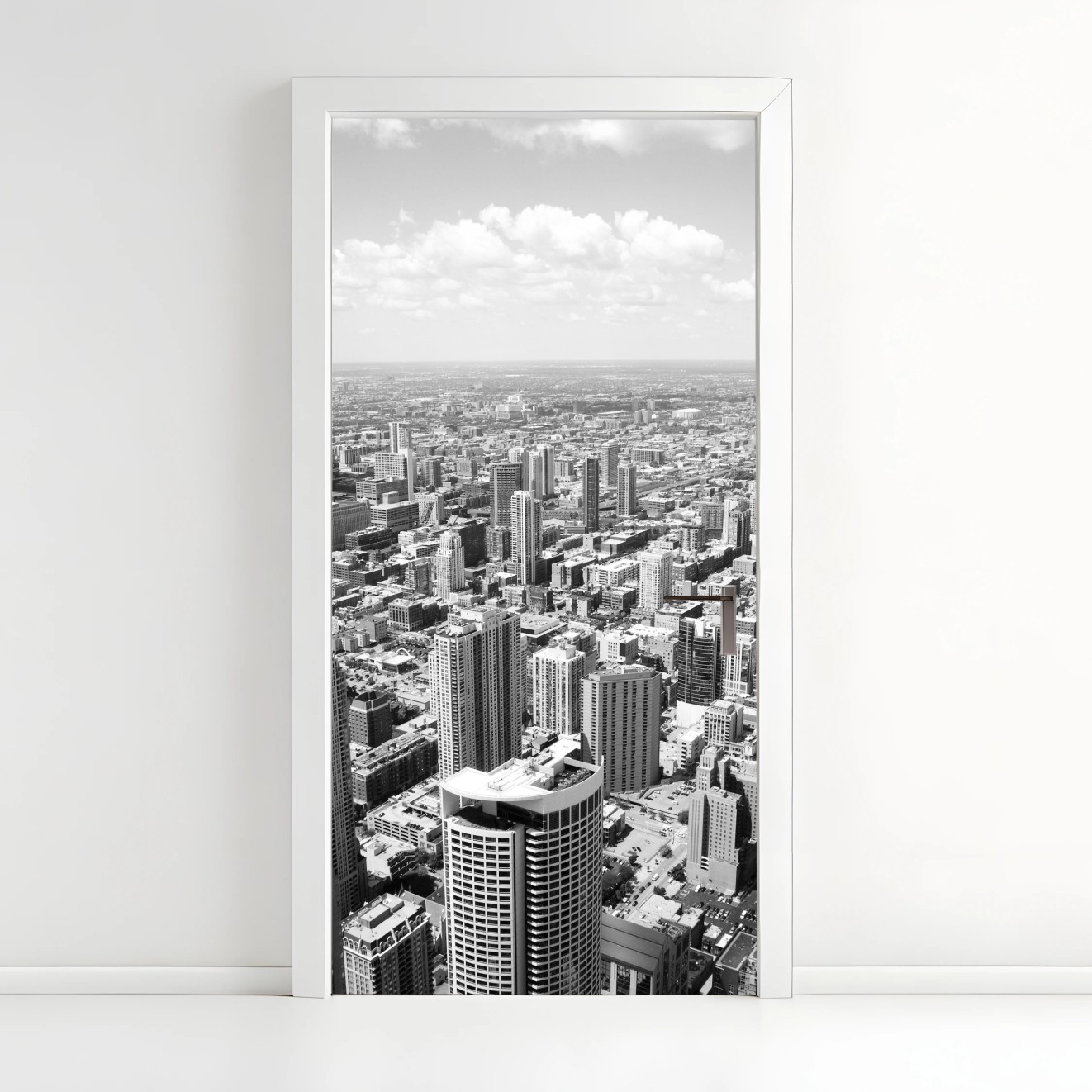 Türaufkleber Chicago skyline in graustufen
