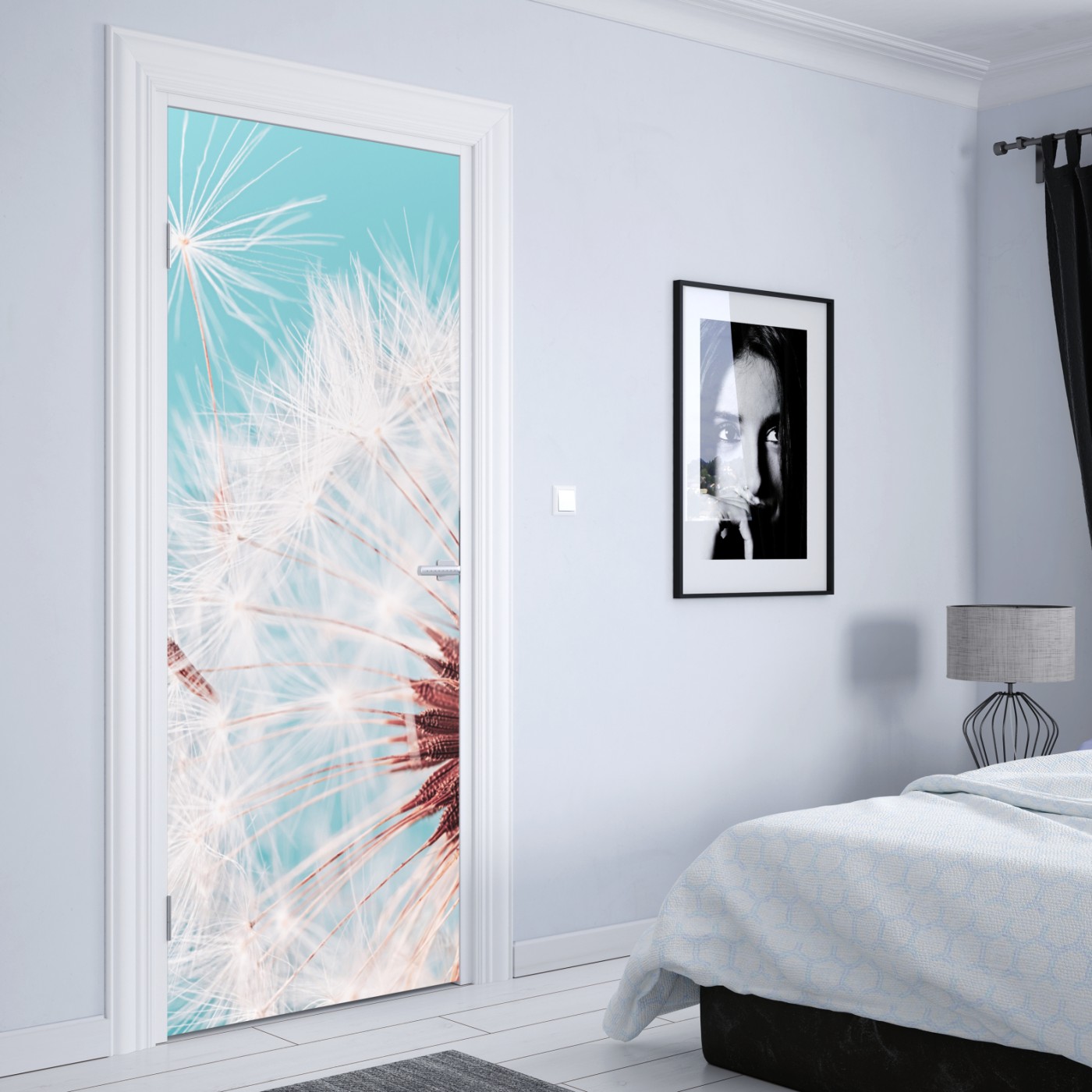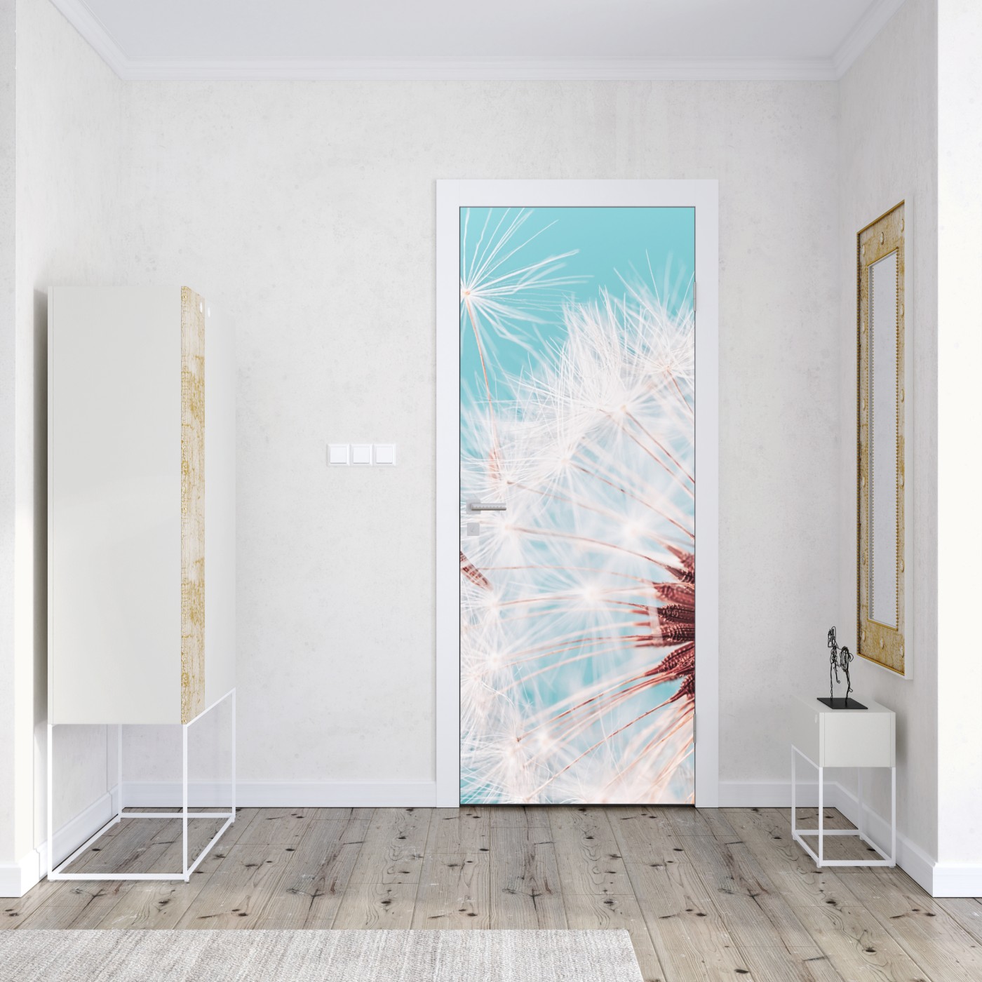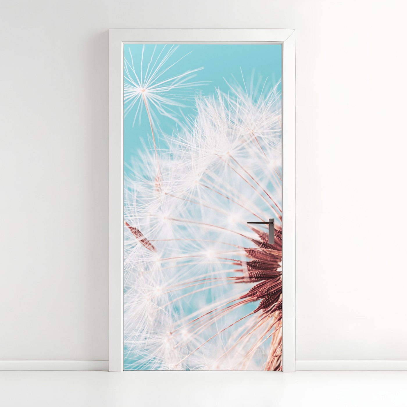 Türaufkleber Zarter löwenzahn vor türkisfarbenem hintergrund