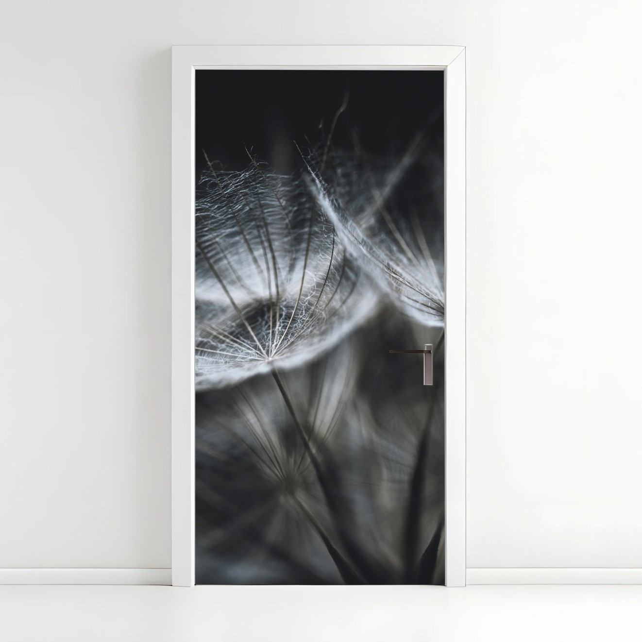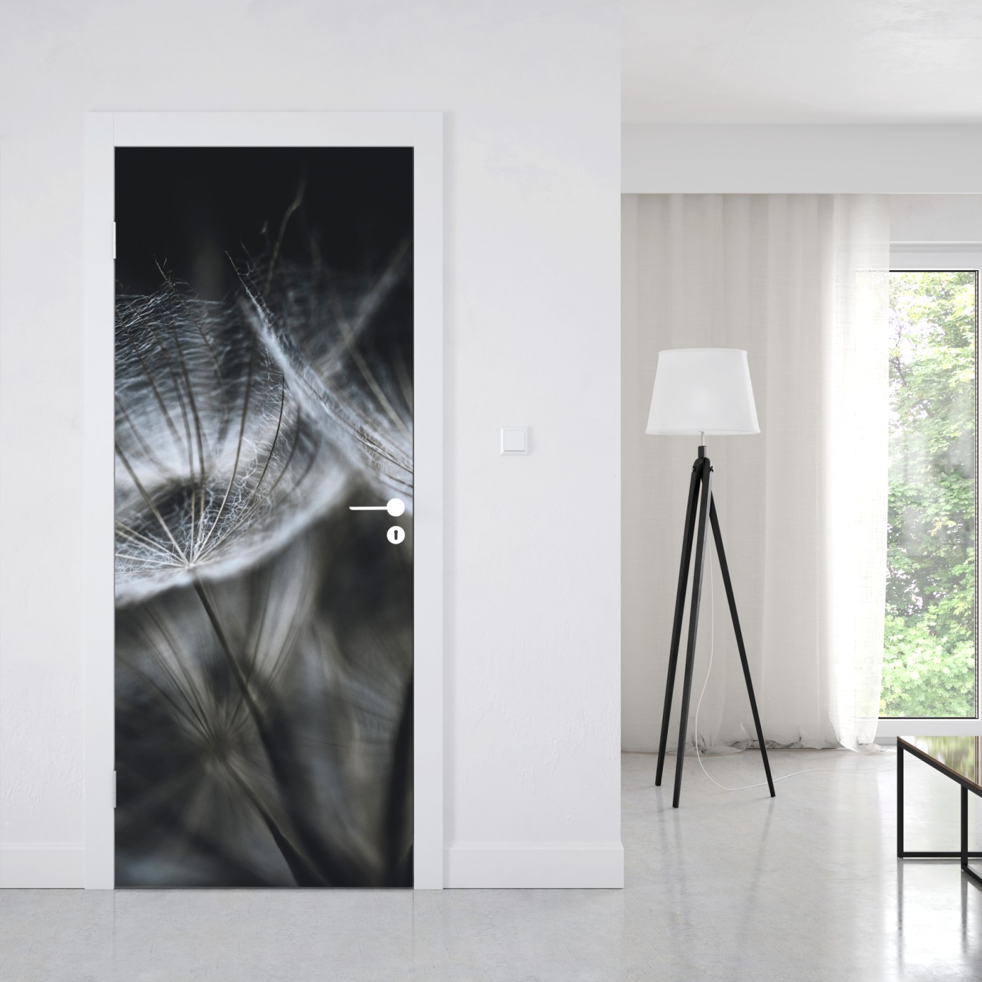 Türaufkleber Zarte löwenzahnsamen in monochrom