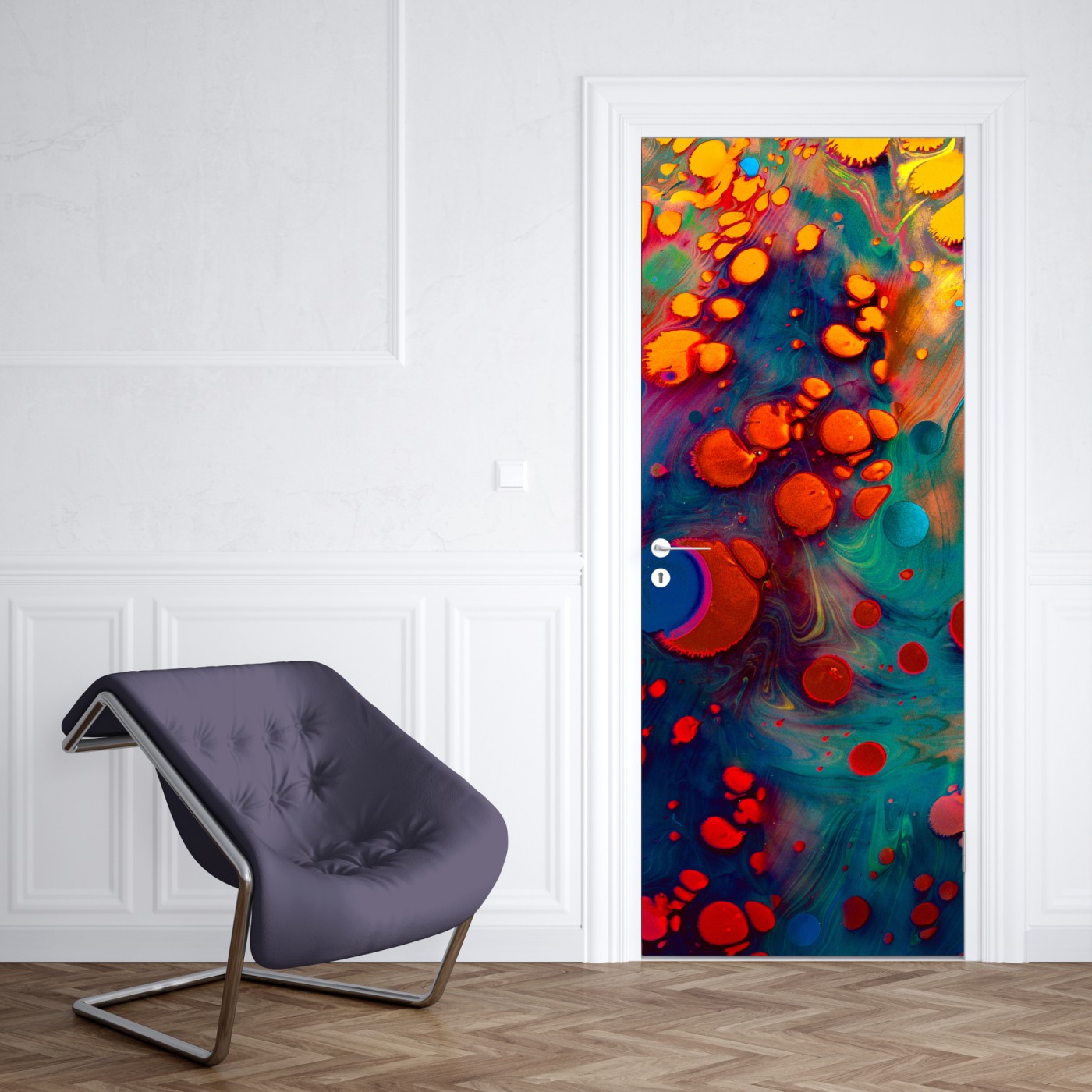 Türaufkleber Lebendige türkis-orange marmorierte kunst