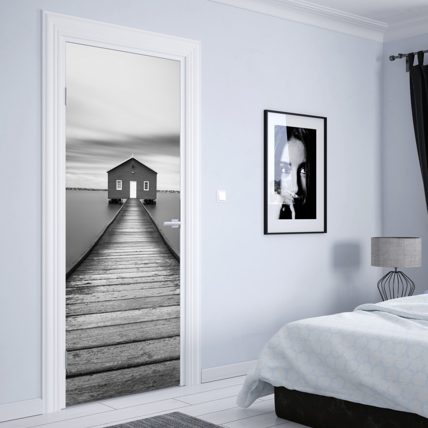 Türaufkleber Einsames bootshaus am ruhigen steg