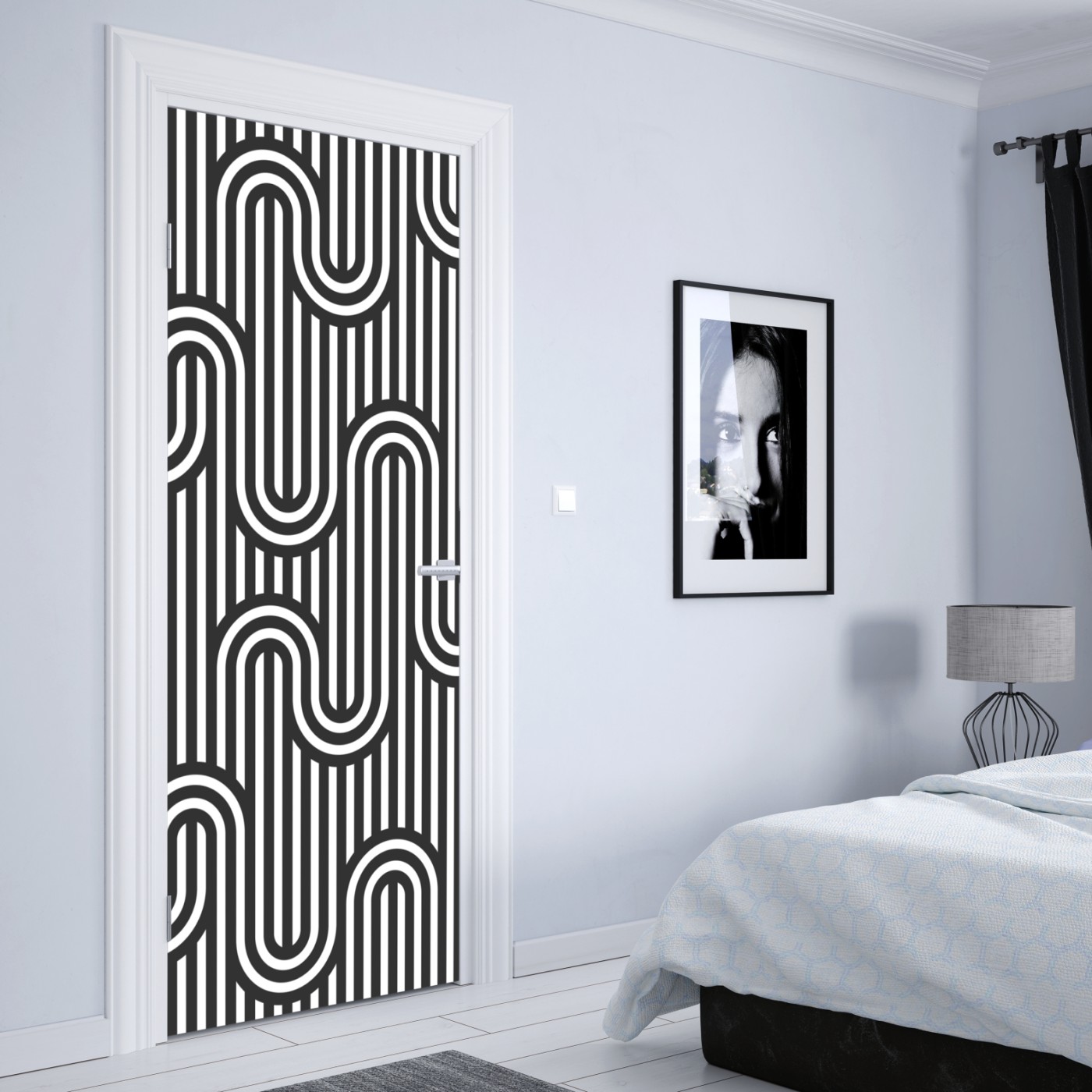 Türaufkleber Schwarz-weiß geometrisches optisches muster
