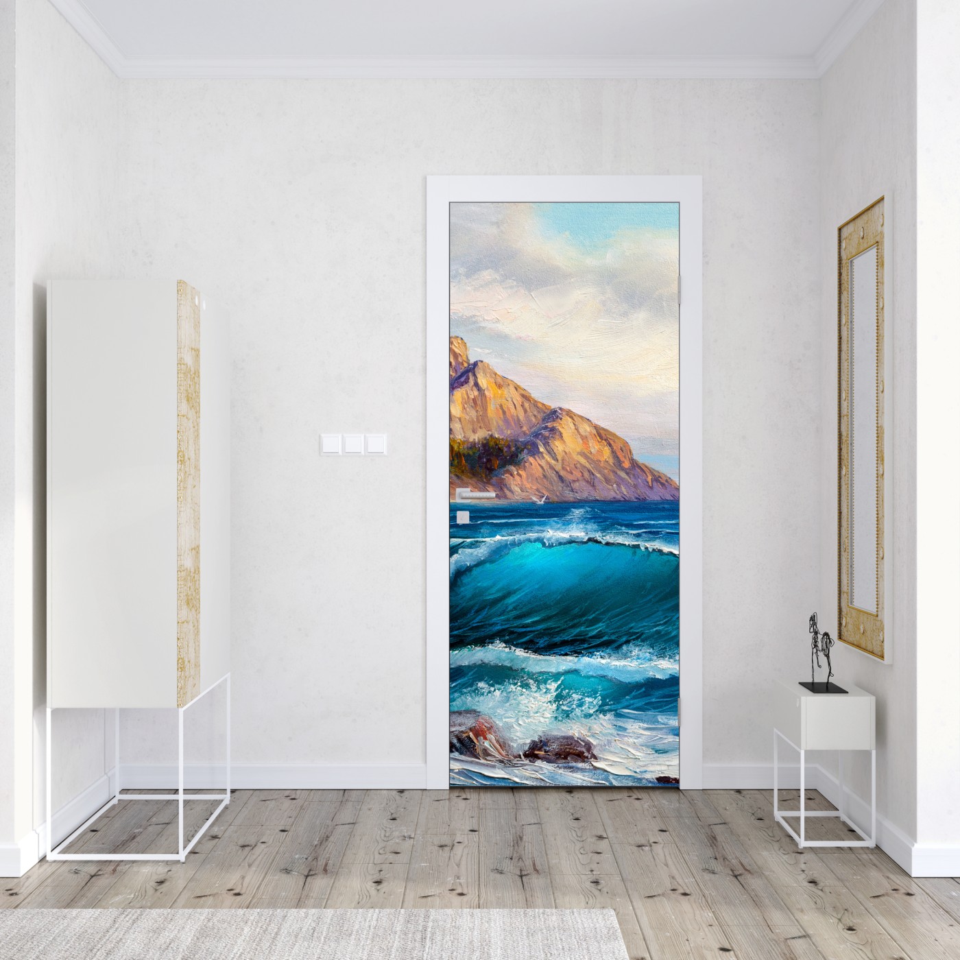 Türaufkleber Türkisblaue welle - meereslandschaft in öl