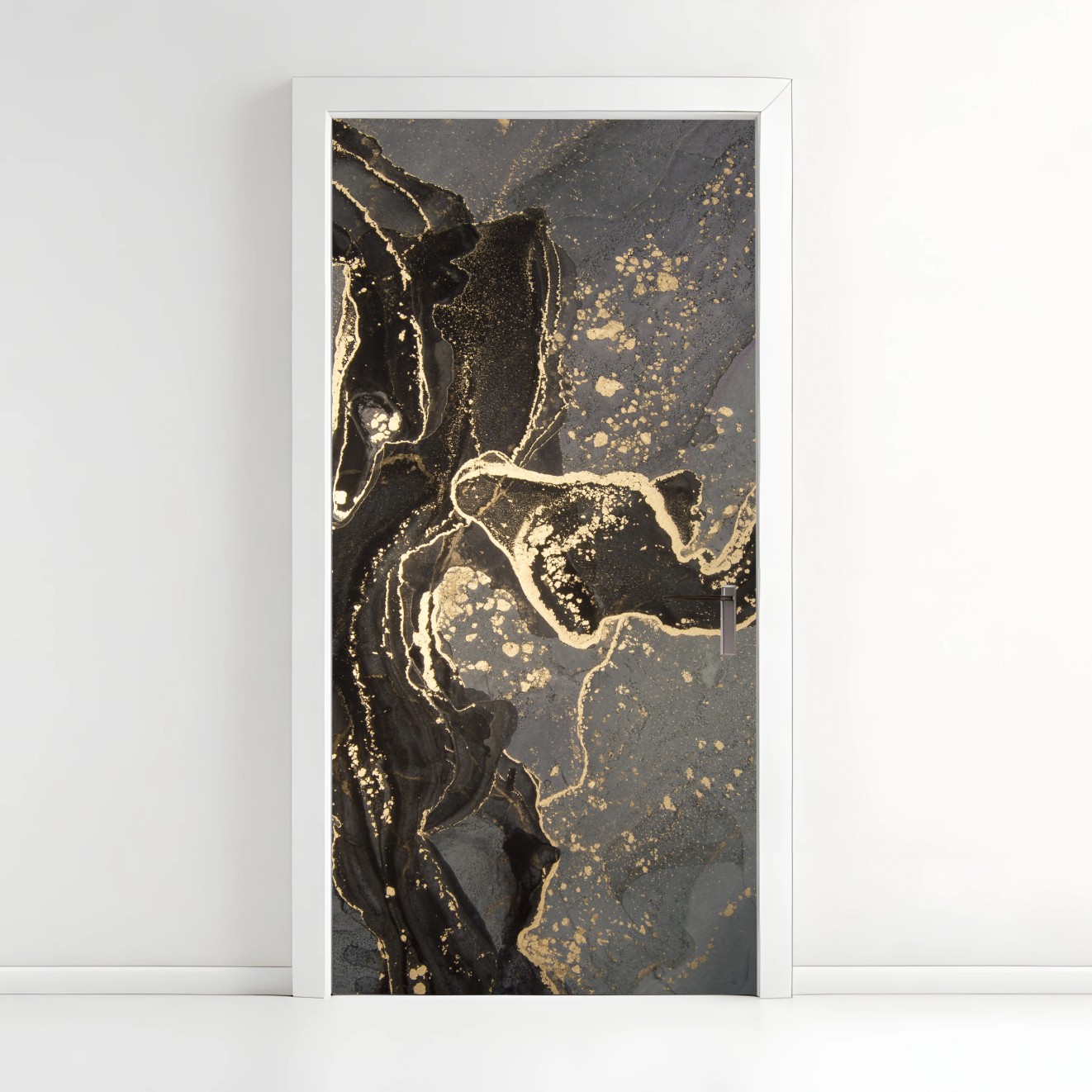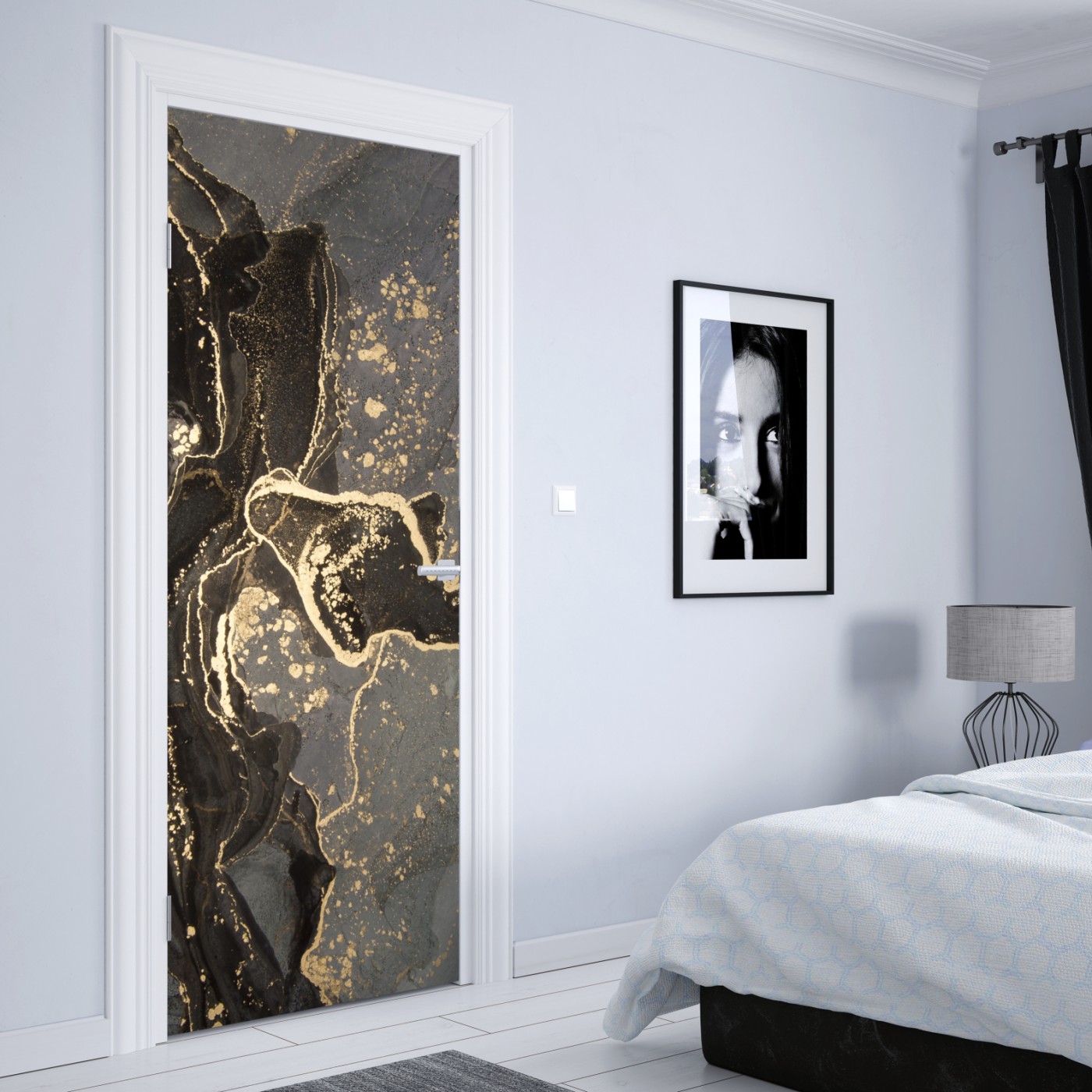 Türaufkleber Luxuriöser schwarz-goldener marmor abstrakt