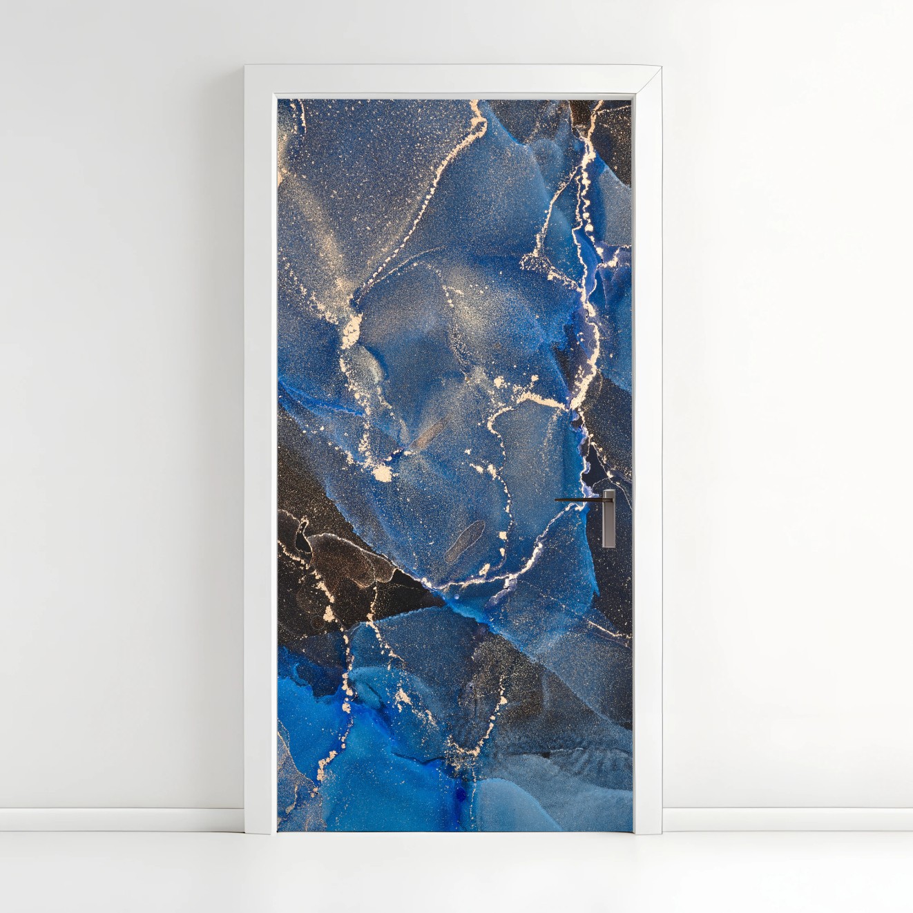 Türaufkleber Luxuriöse blaue und goldene abstrakte wellen
