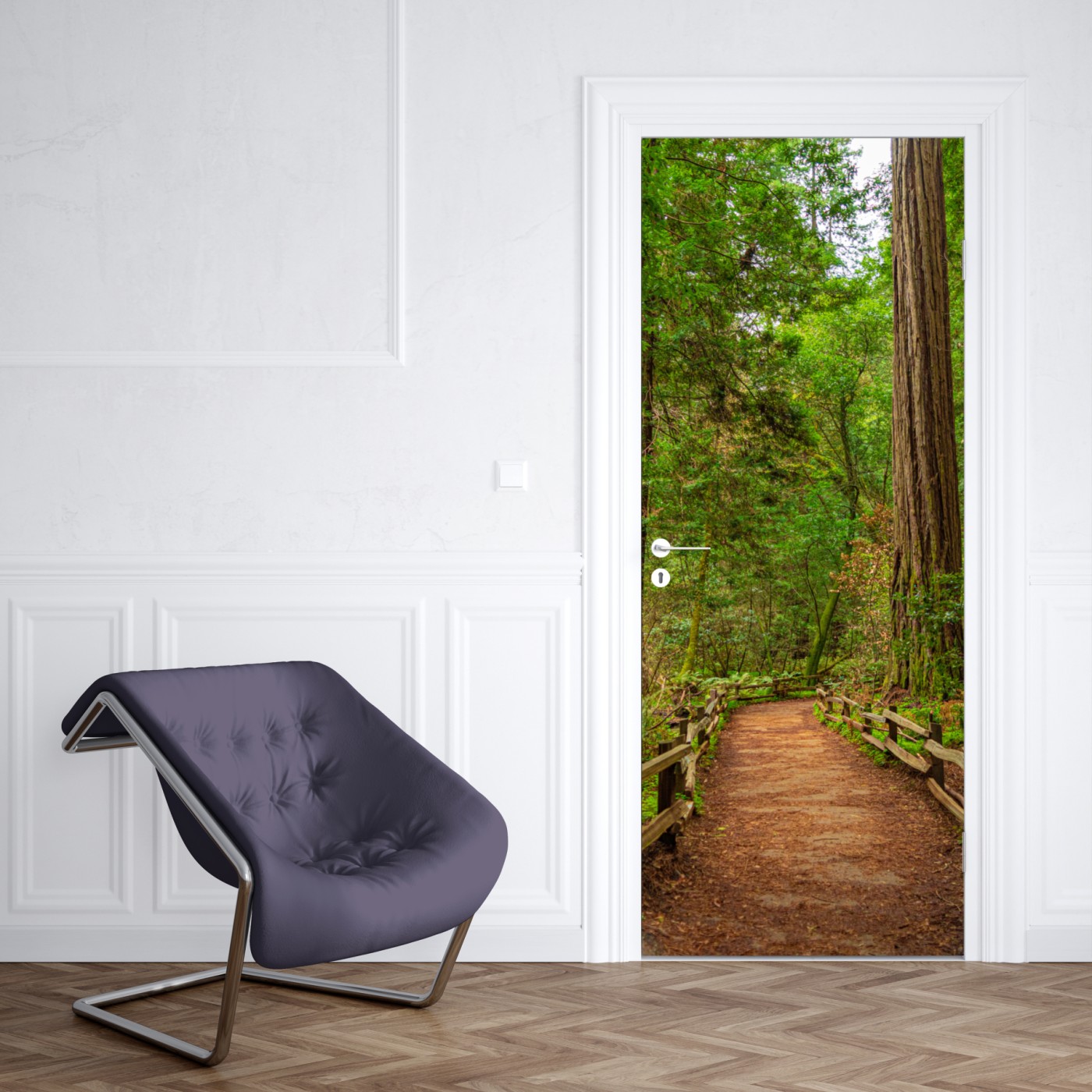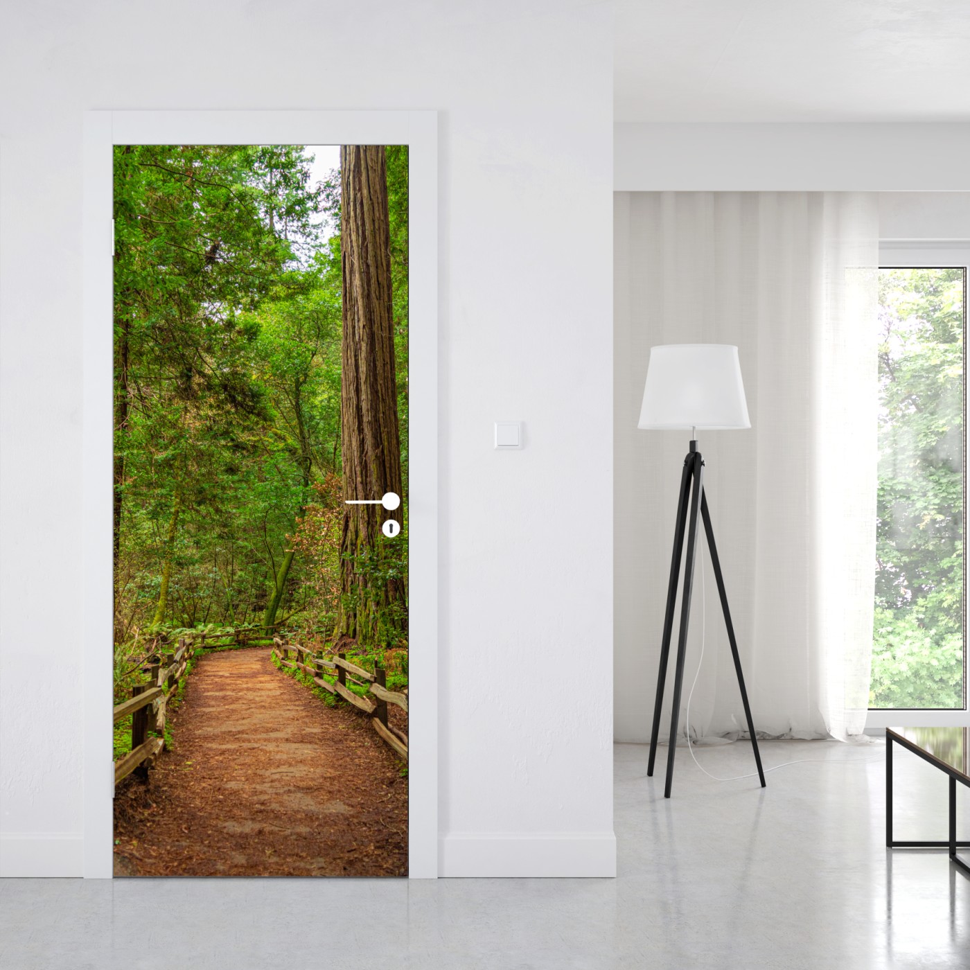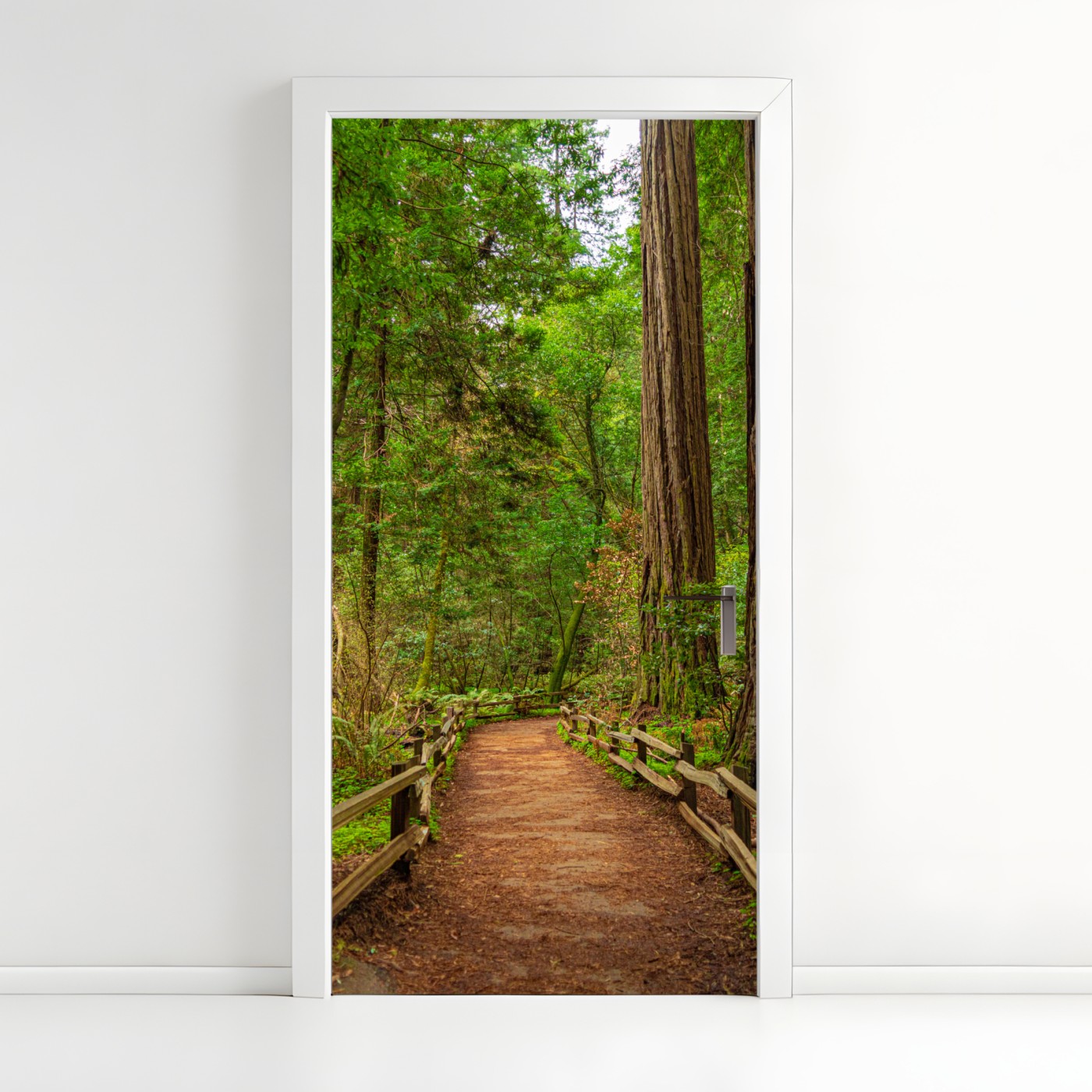 Türaufkleber Majestätischer waldpfad zwischen mammutbäumen
