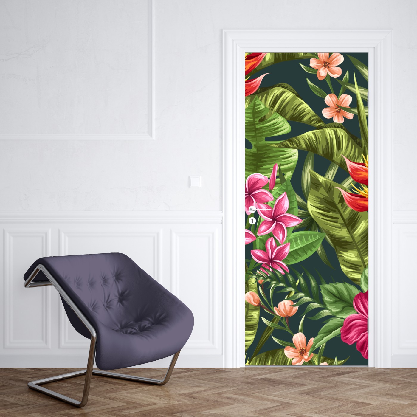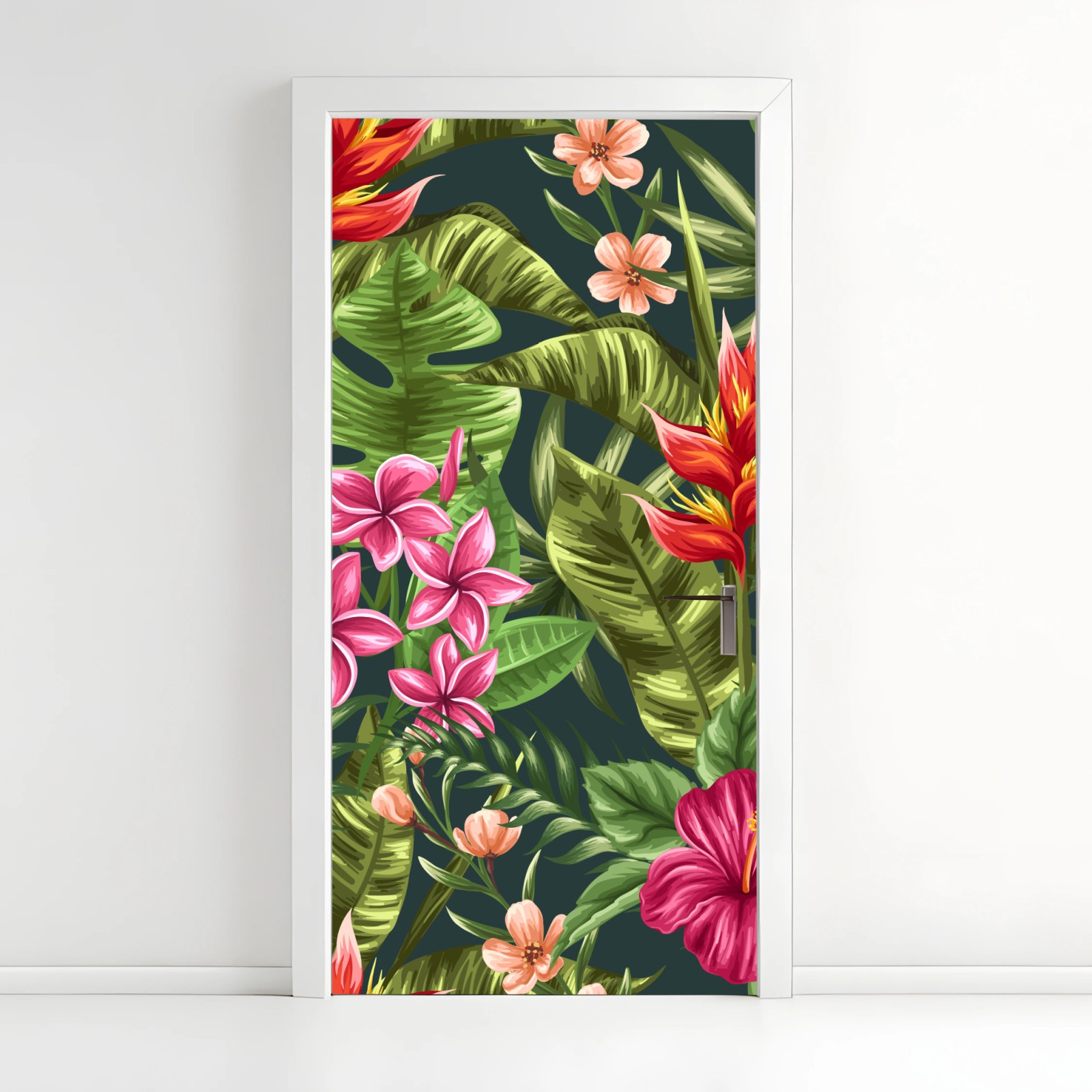 Türaufkleber Tropisches hibiskus- und plumeria-blumenmuster