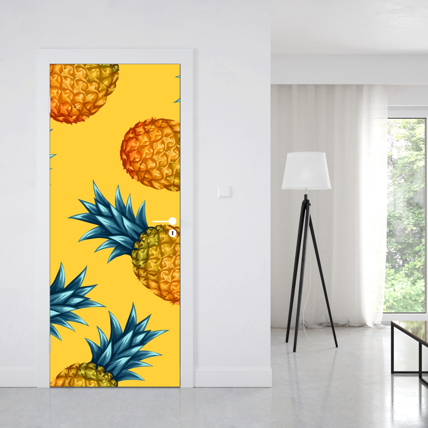 Türaufkleber Tropisches ananasmuster auf gelbem hintergrund