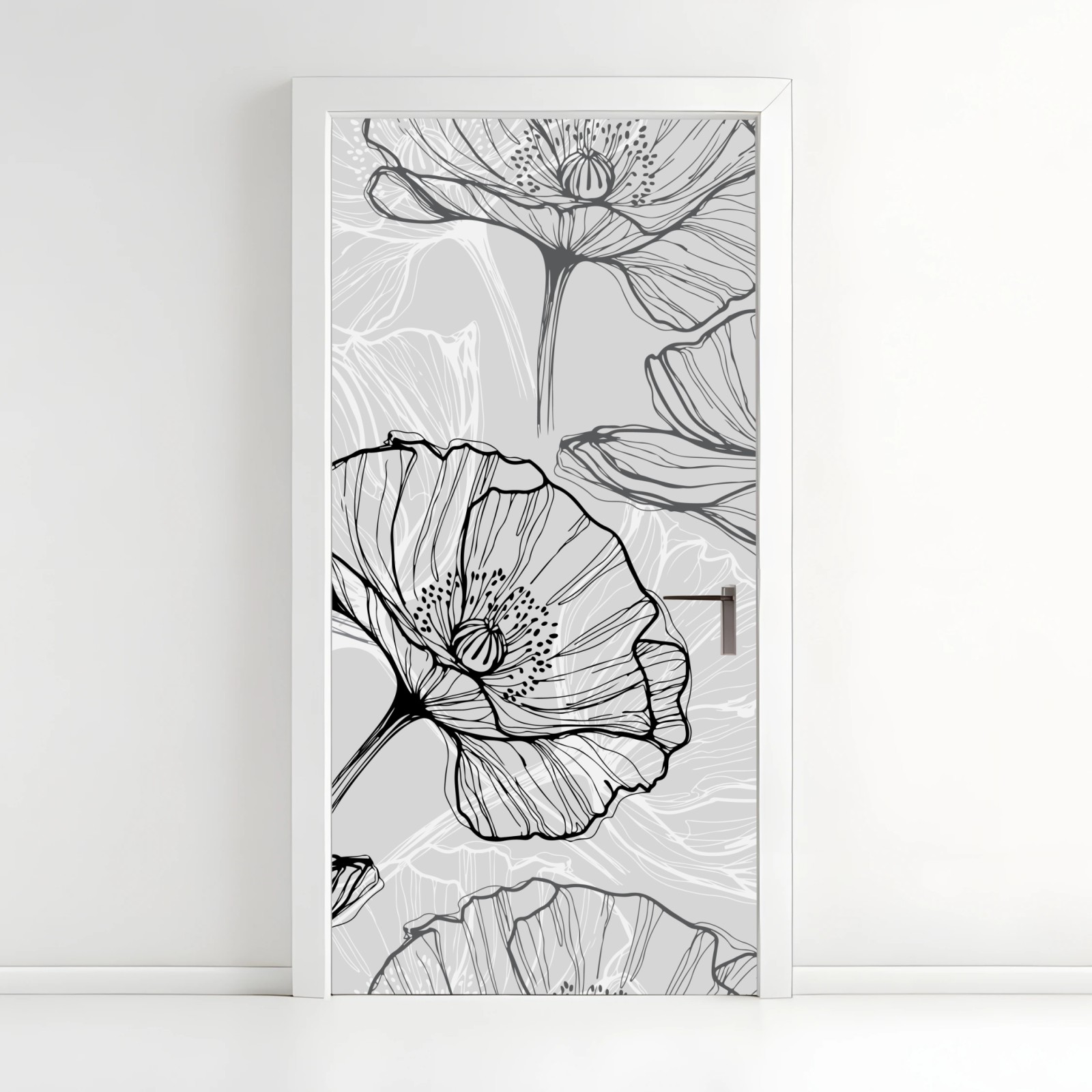 Türaufkleber Zarter grauer mohn in linienzeichnung
