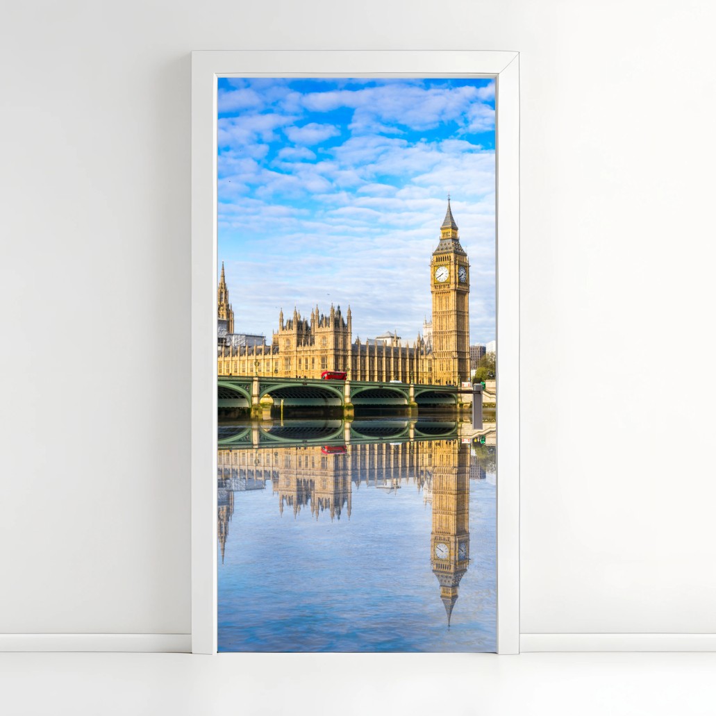 Türaufkleber London skyline mit spiegelung auf dem fluss