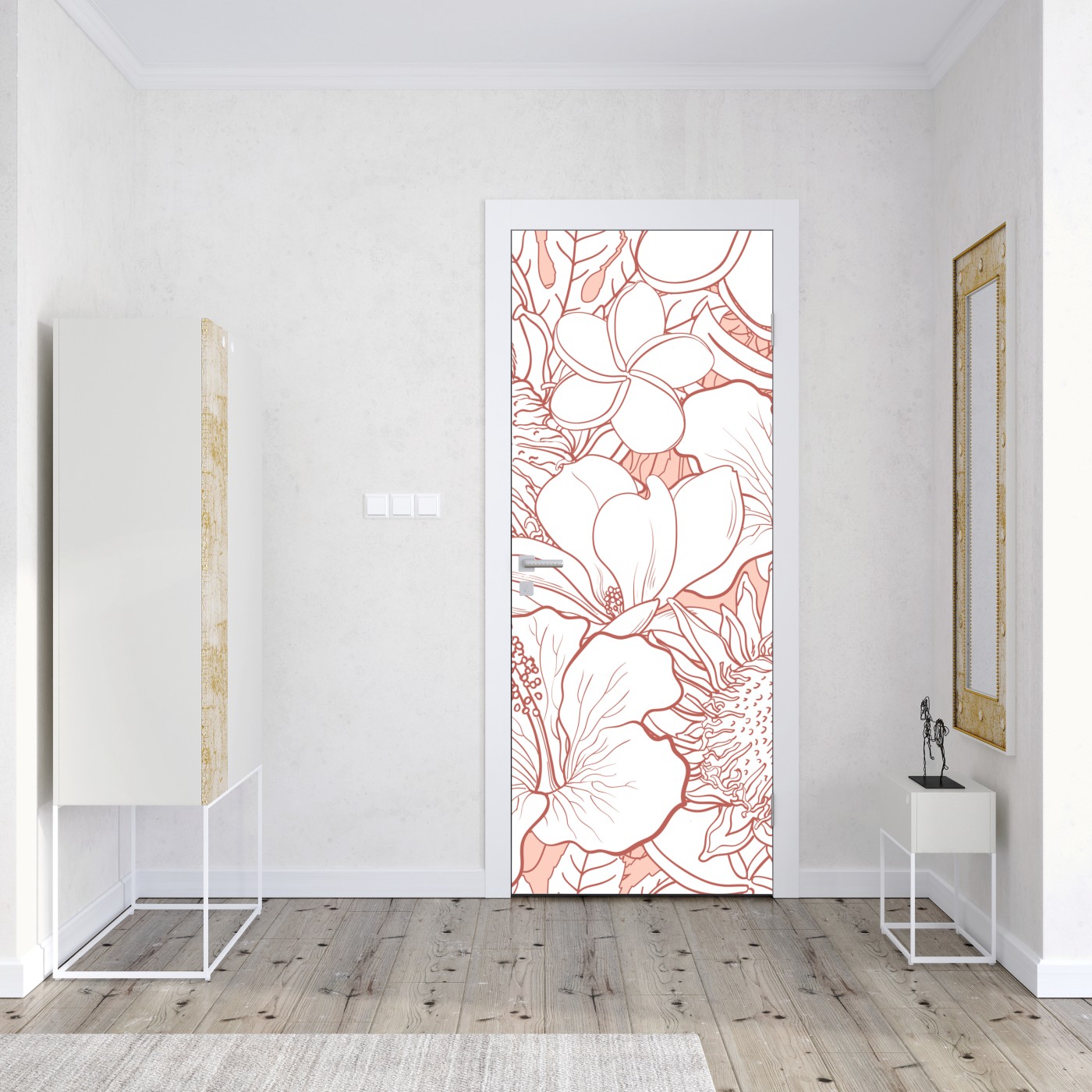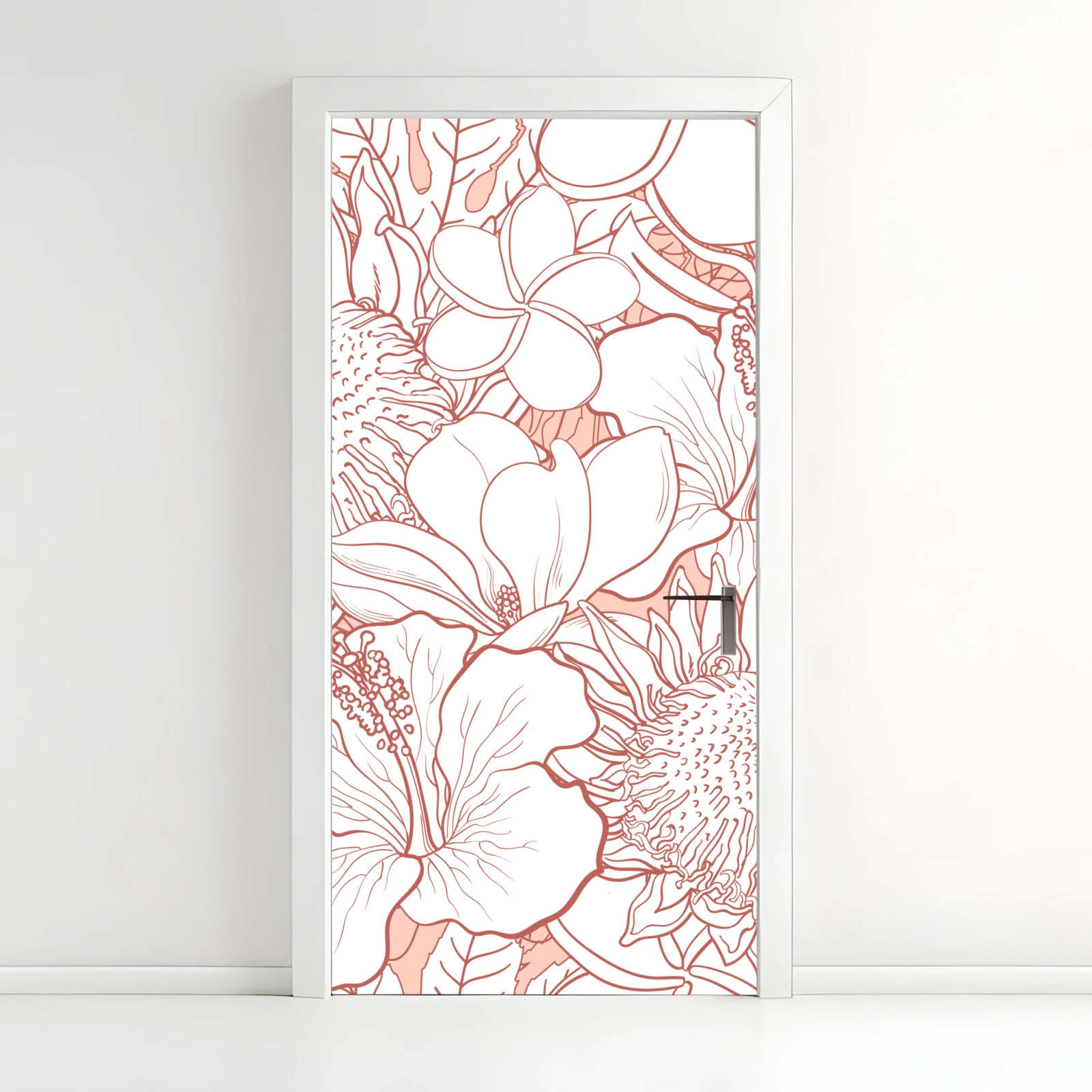 Türaufkleber Zartes korallenfarbenes blumenmuster