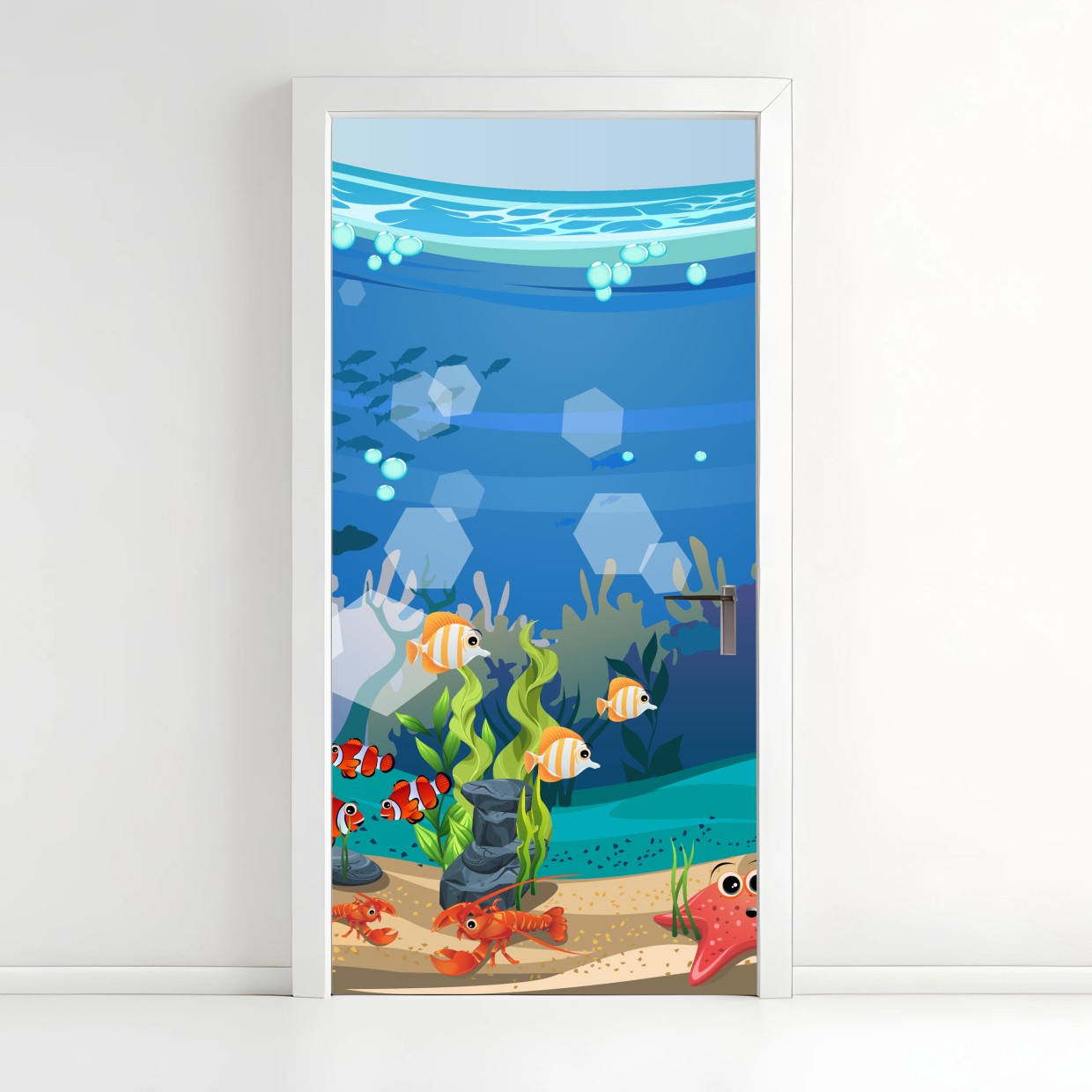 Türaufkleber Verspielte unterwasserwelt mit korallenriff
