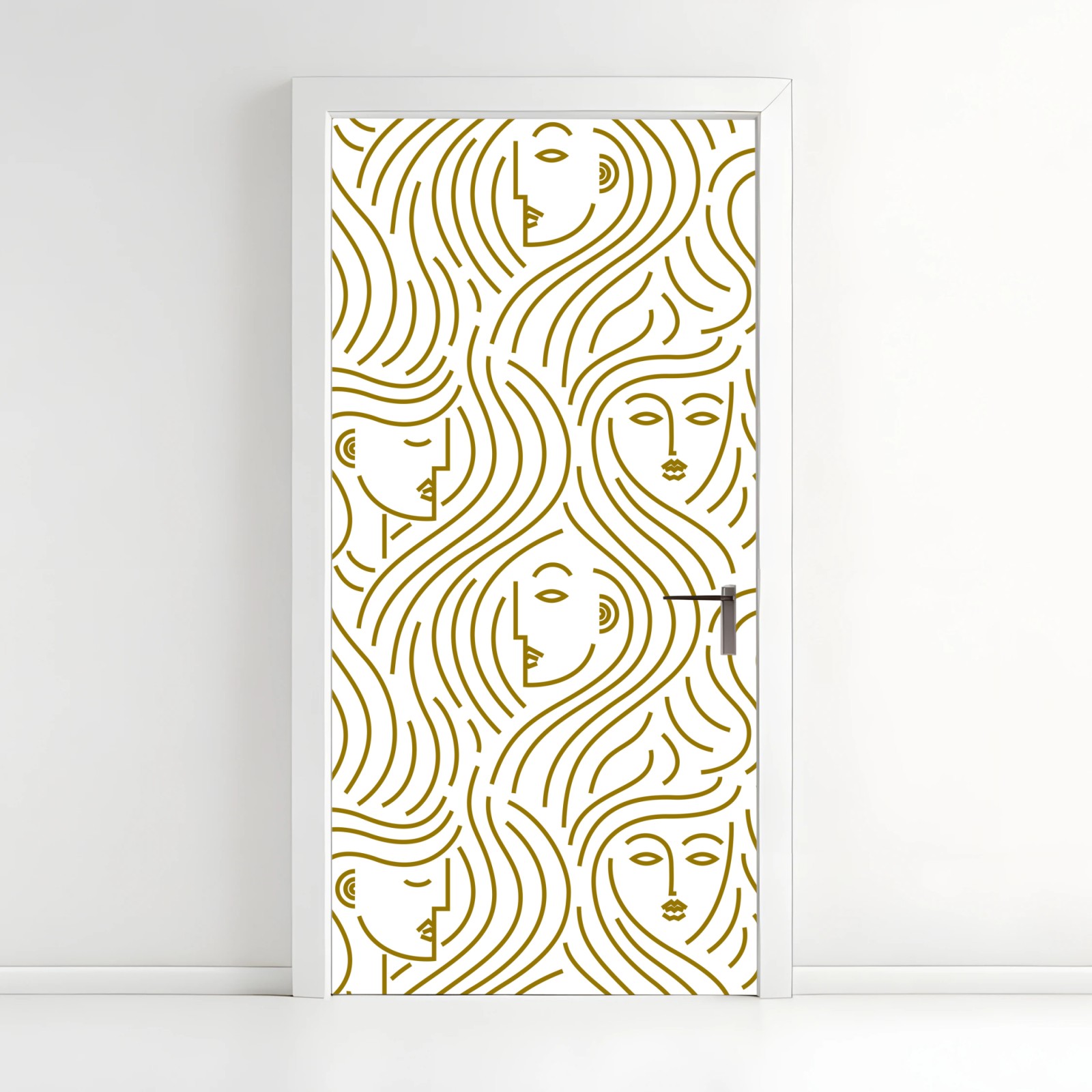 Türaufkleber Goldene fließende gesichter nahtloses muster