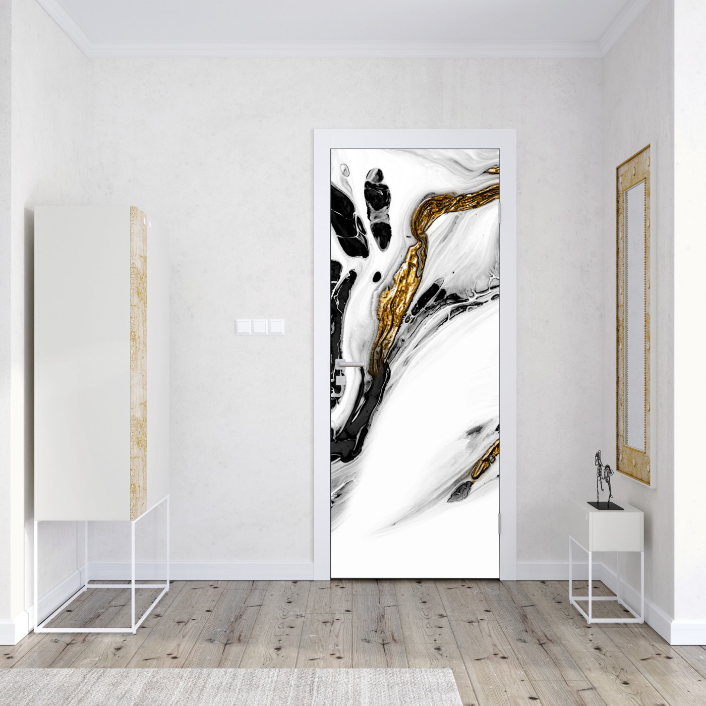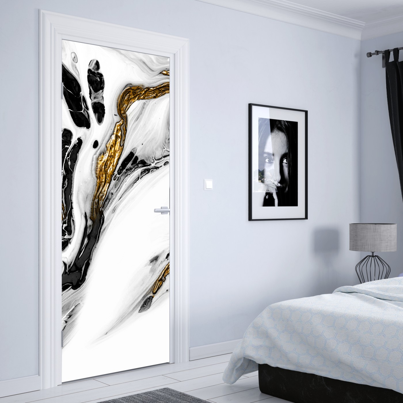 Türaufkleber Schwarz-weiße abstraktion mit goldenen adern