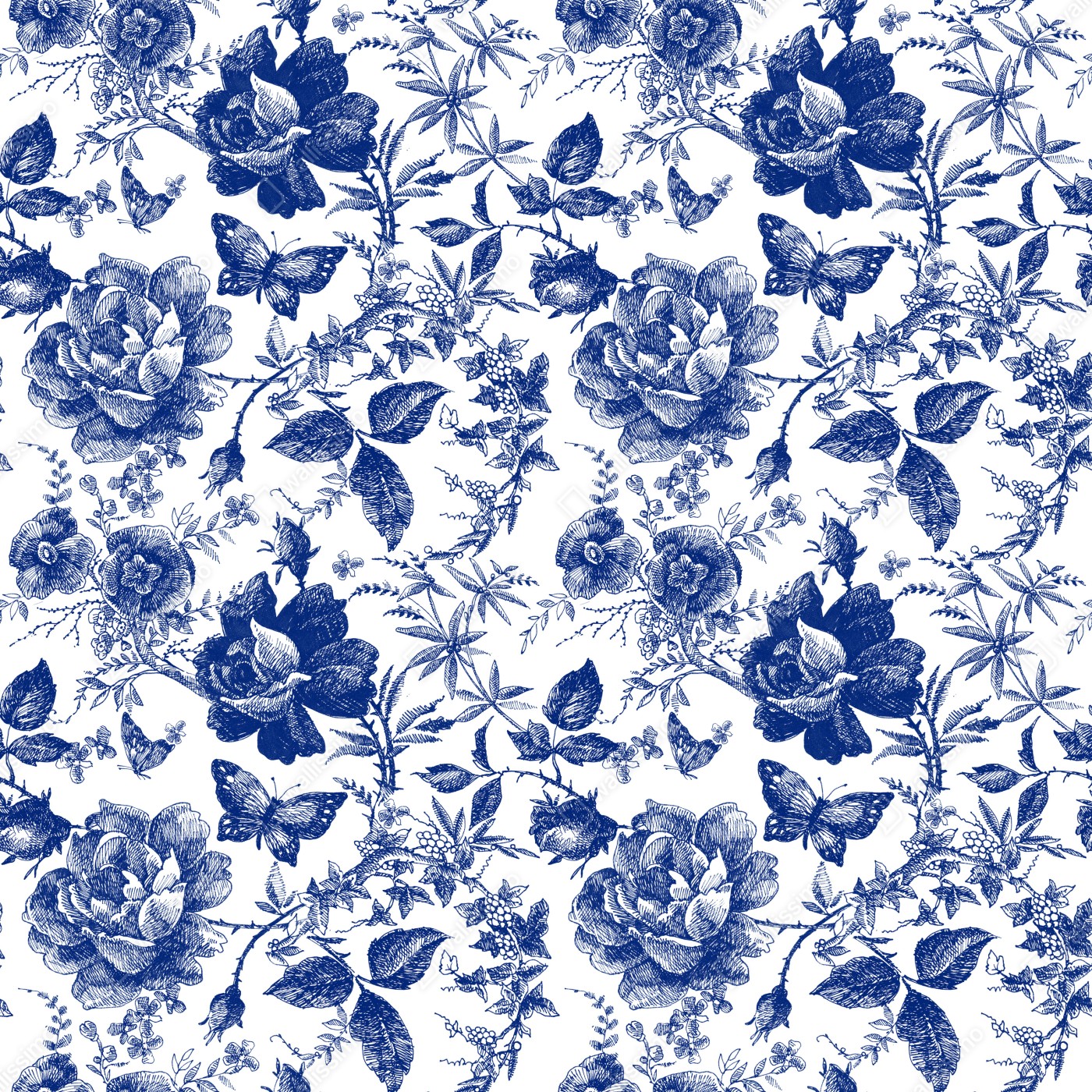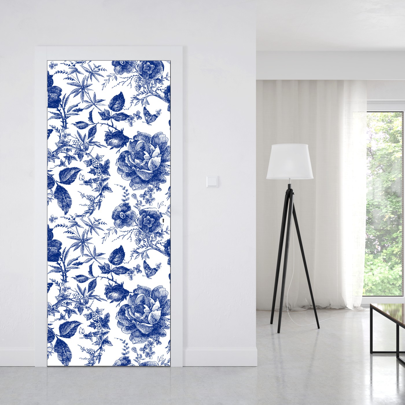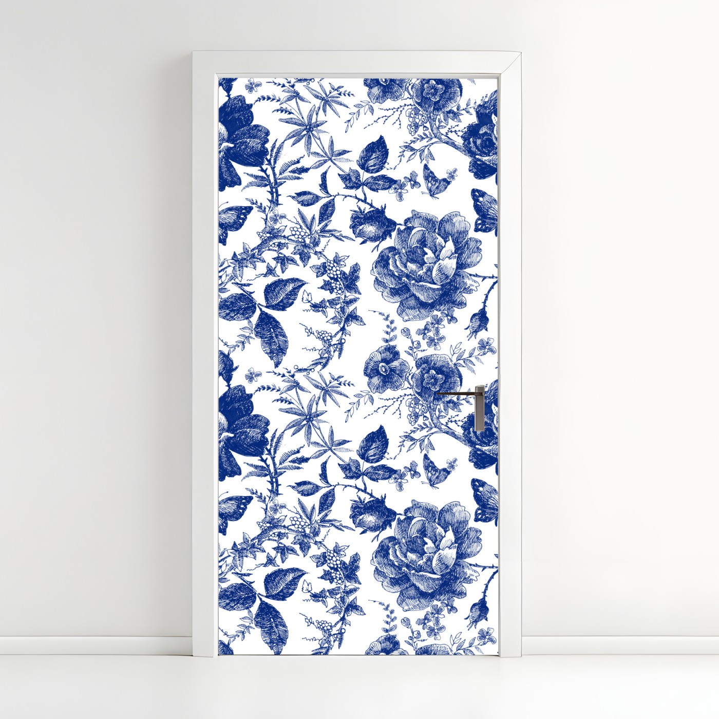 Türaufkleber Blaues blumen toile-muster