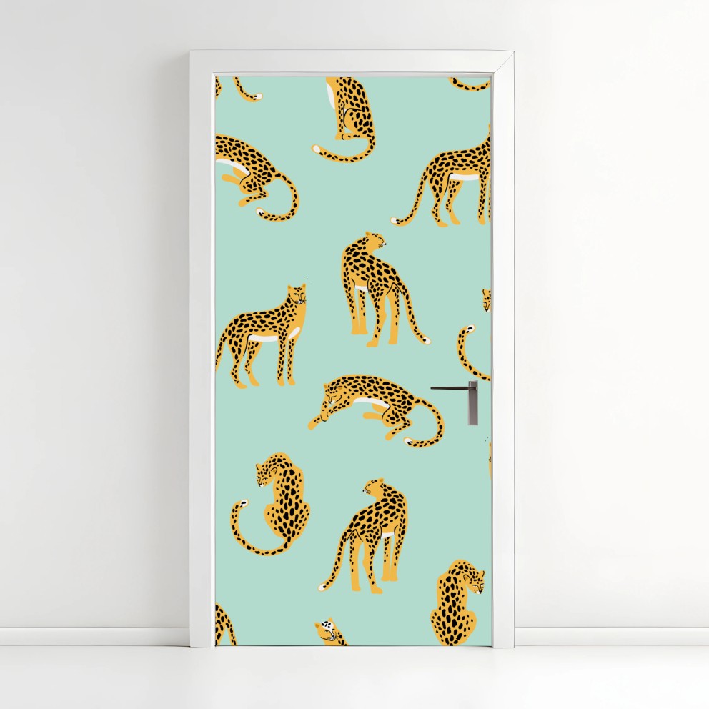 Türaufkleber Verspieltes gepardenmuster auf türkisgrund