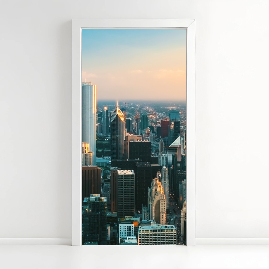 Türaufkleber Chicago skyline bei sonnenuntergang