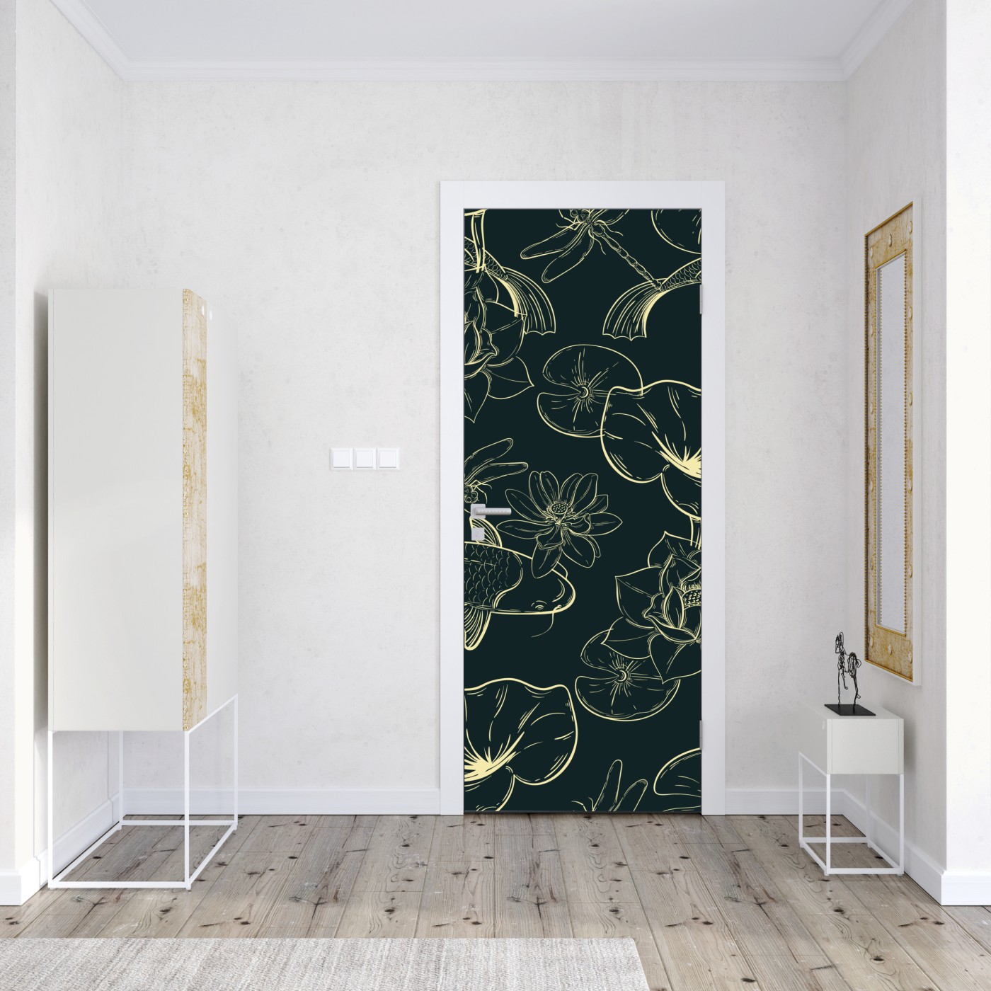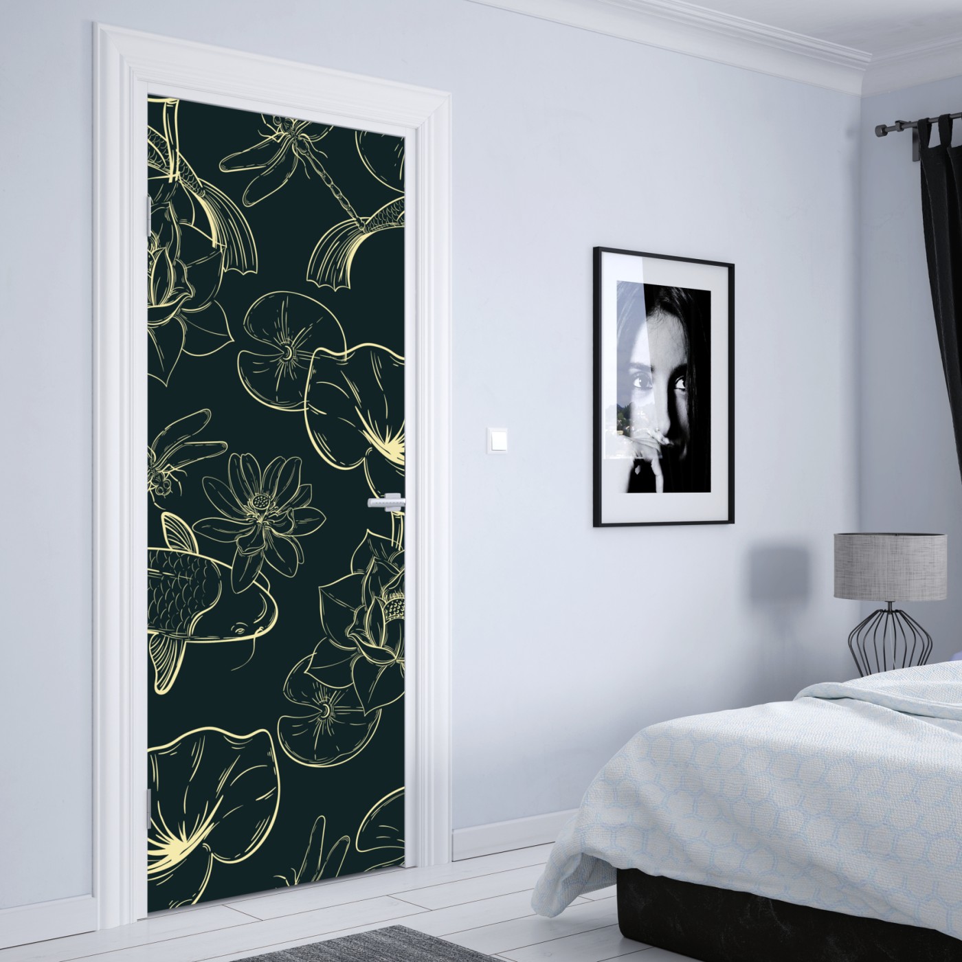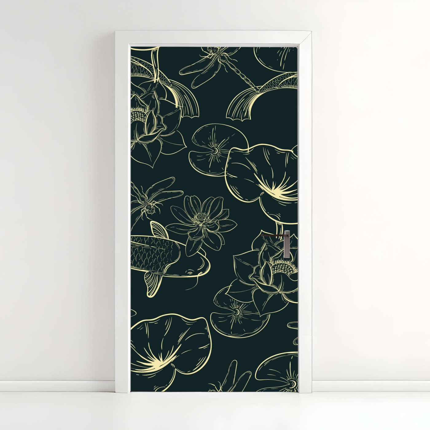 Türaufkleber Handgezeichnetes koi- und lotusmuster