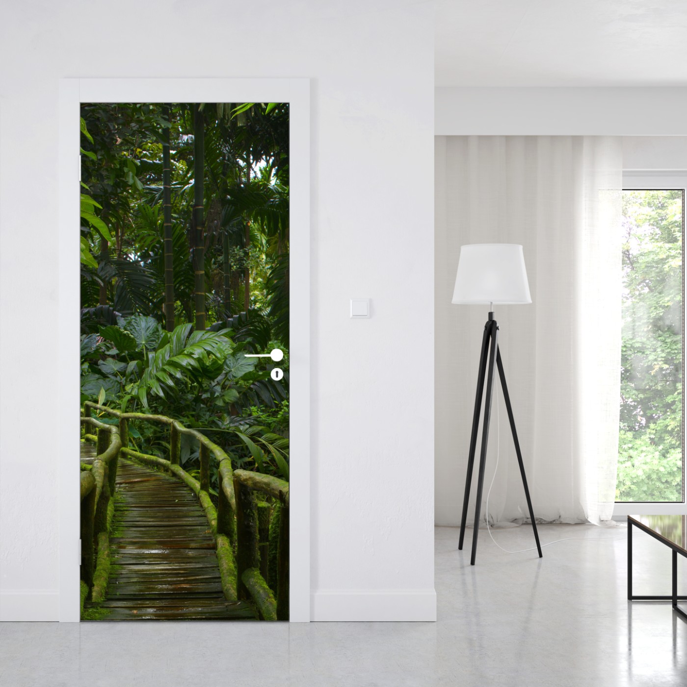 Türaufkleber Ruhiger dschungelsteg durch üppigen regenwald