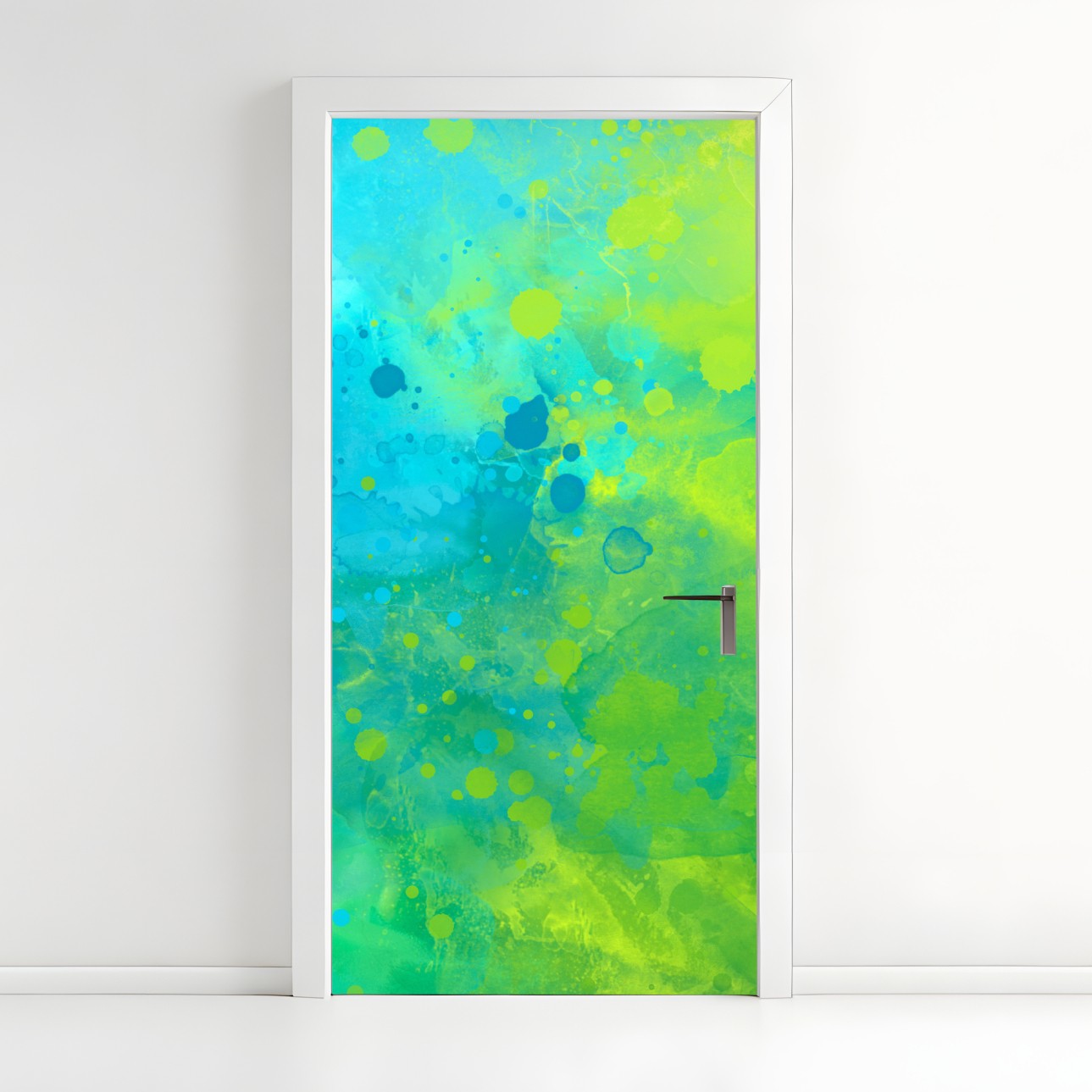 Türaufkleber Lebhafte türkis und limetten aquarellspritzer