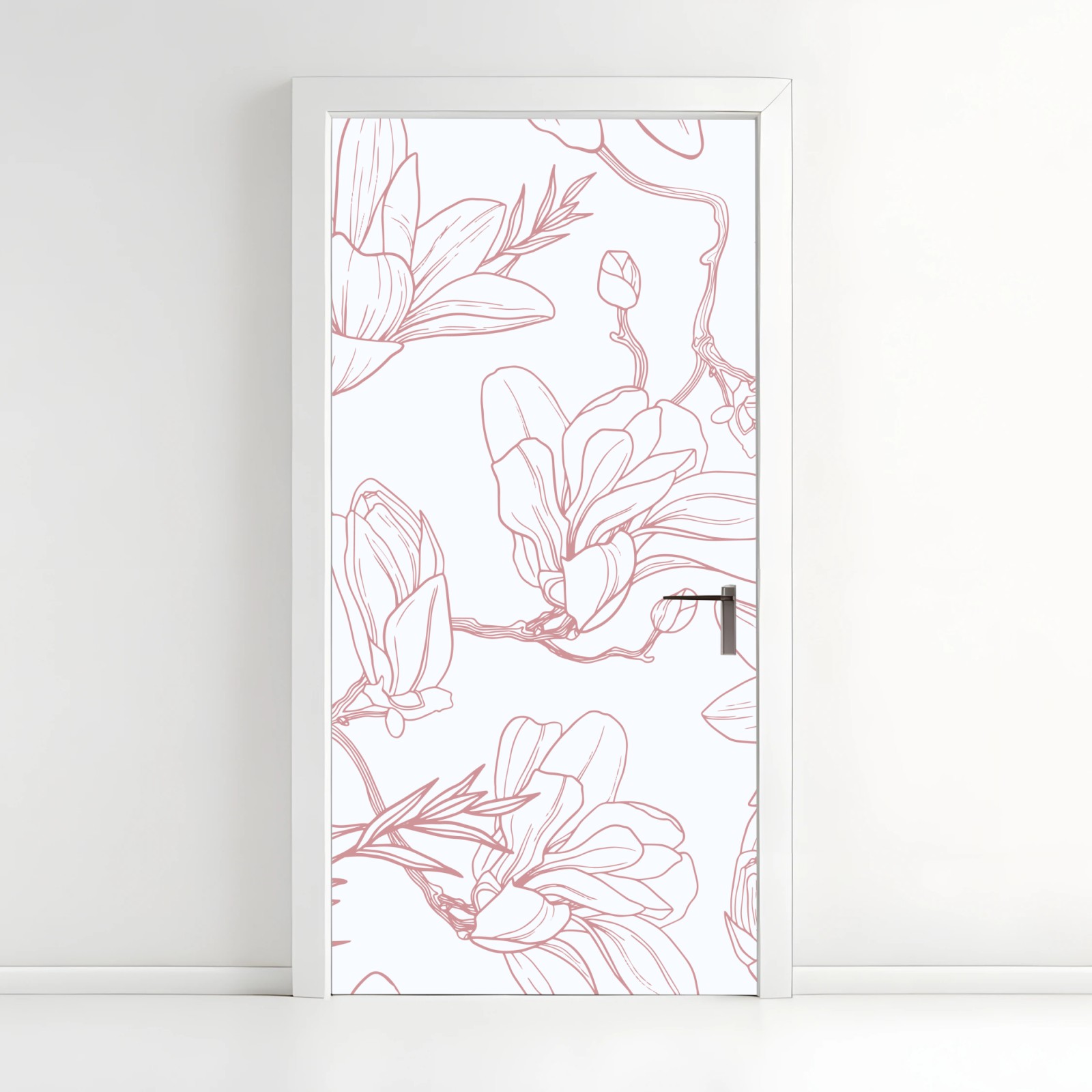Türaufkleber Zartes magnolienmuster in sanftem rosa