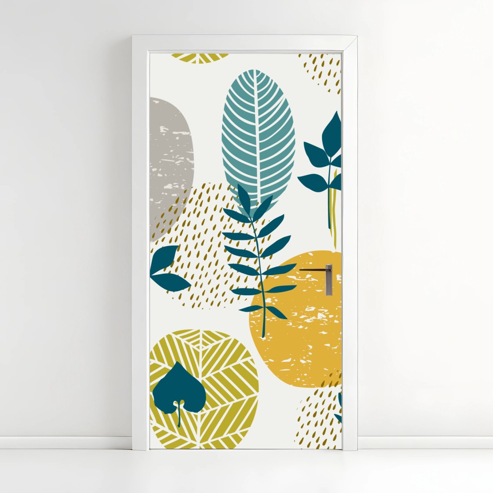 Türaufkleber Türkis-senfgelbes botanisches muster