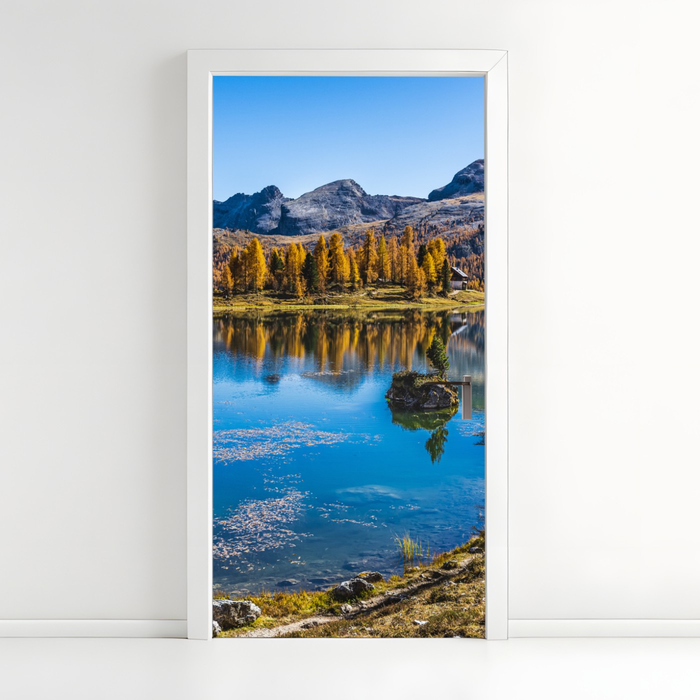 Türaufkleber Herbstlicher alpensee mit bergreflexion