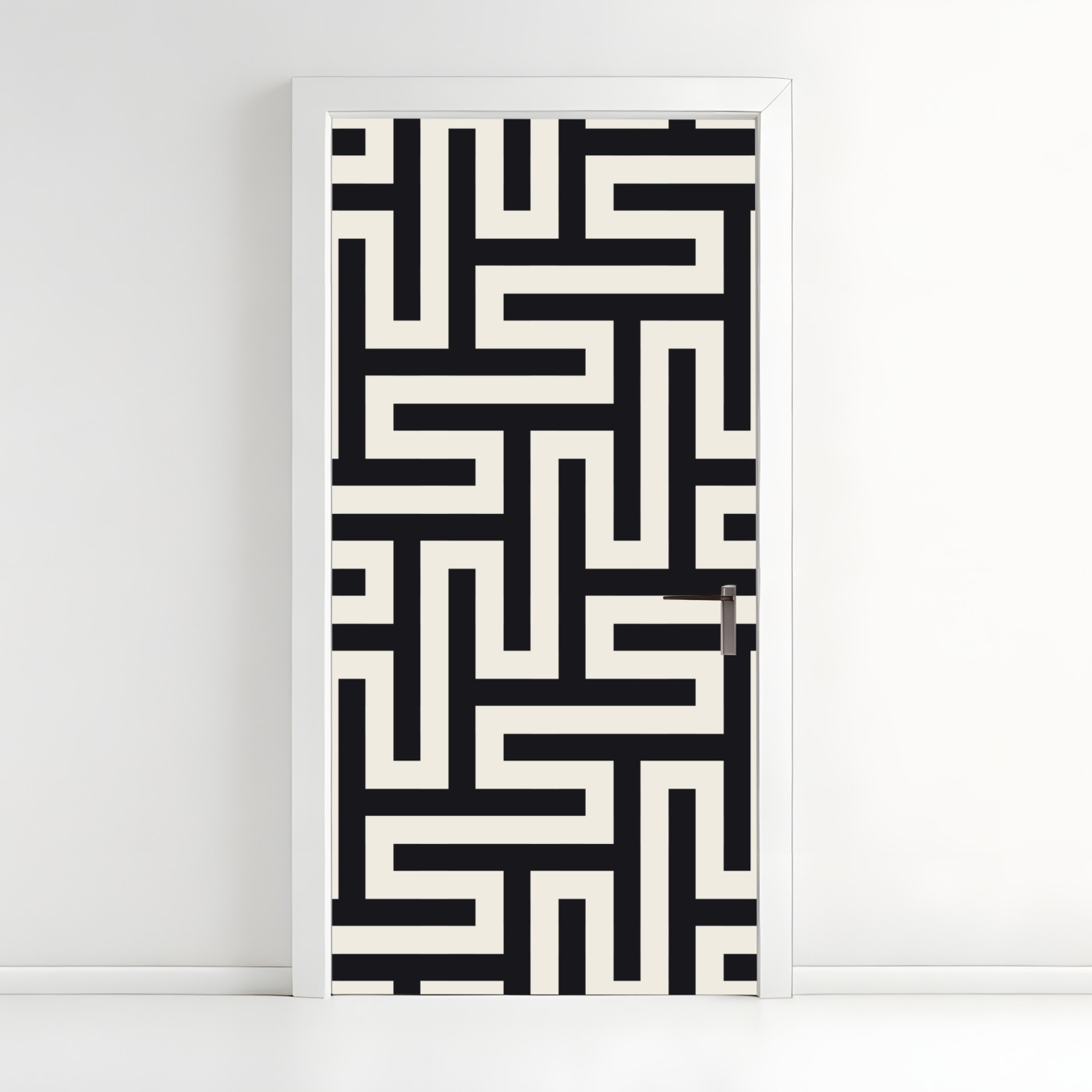 Türaufkleber Geometrisches labyrinthmuster in beige und schwarz