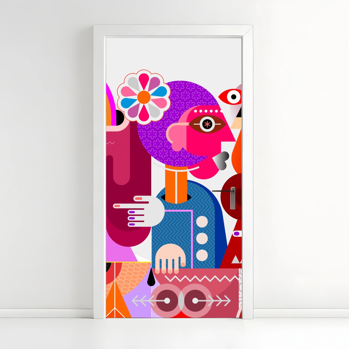 Türaufkleber Mann mit regenbogen reitet geometrischen vogel