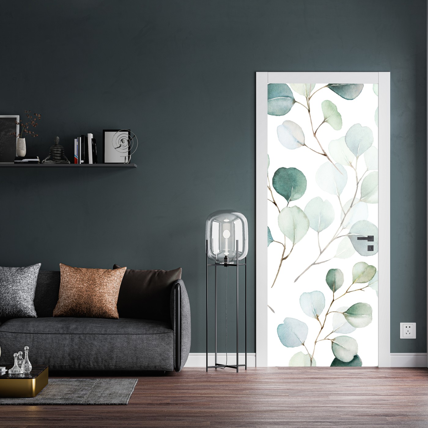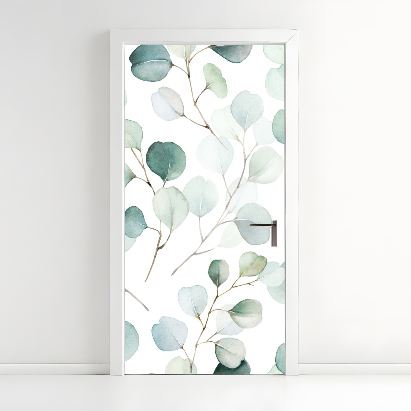 Türaufkleber Zarter eukalyptus-aquarell blättermuster