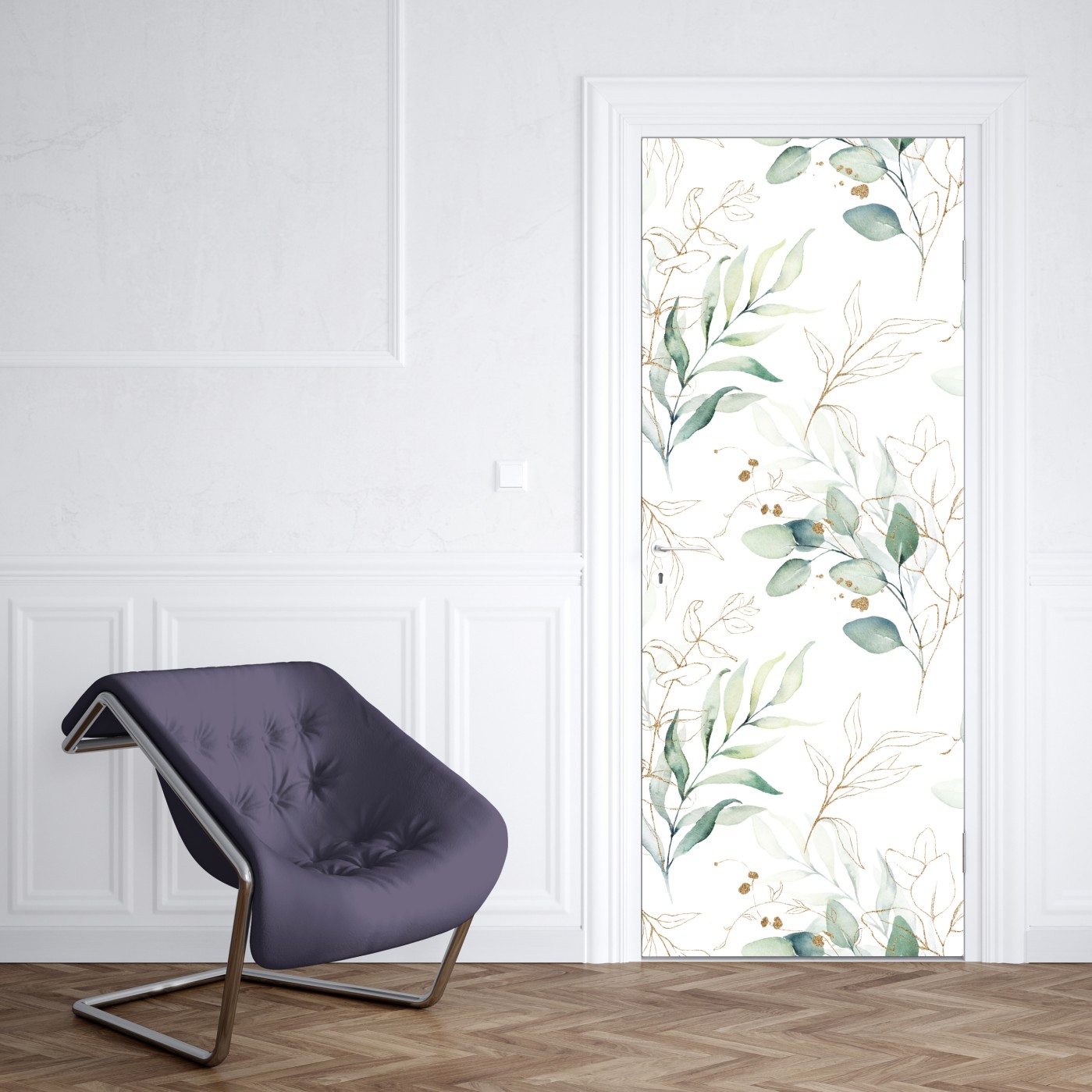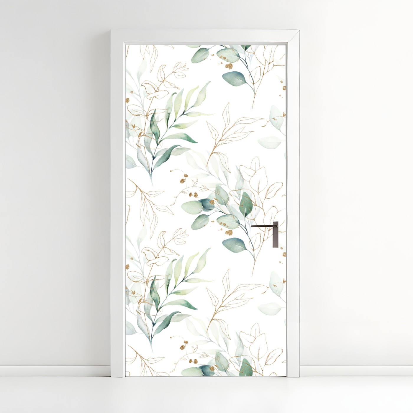 Türaufkleber Sanftes eukalyptus aquarellmuster