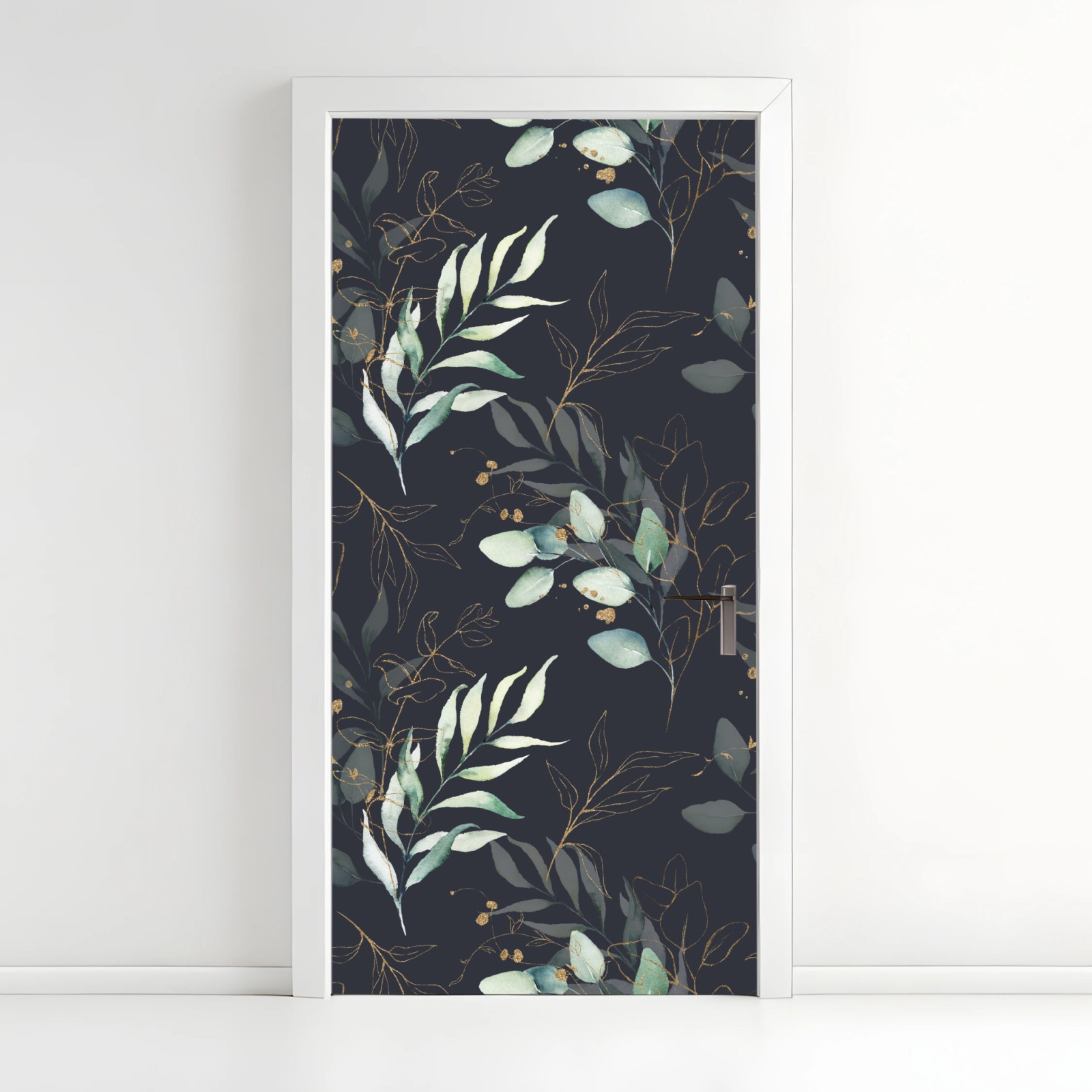 Türaufkleber Aquarell eukalyptusblätter auf dunklem hintergrund