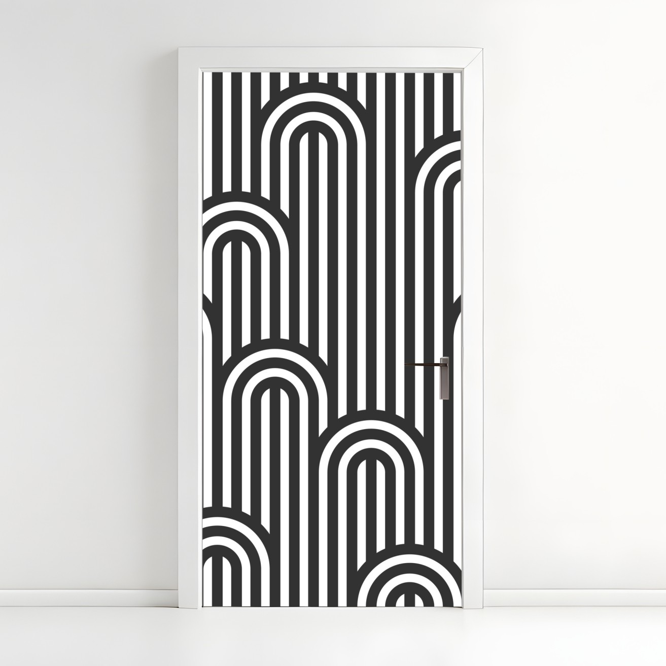 Türaufkleber Schwarzweißes geometrisches streifenmuster