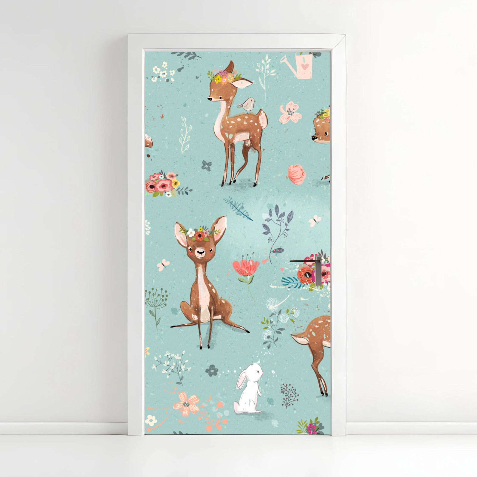 Türaufkleber Pastellmuster mit rehkitzen und hasen